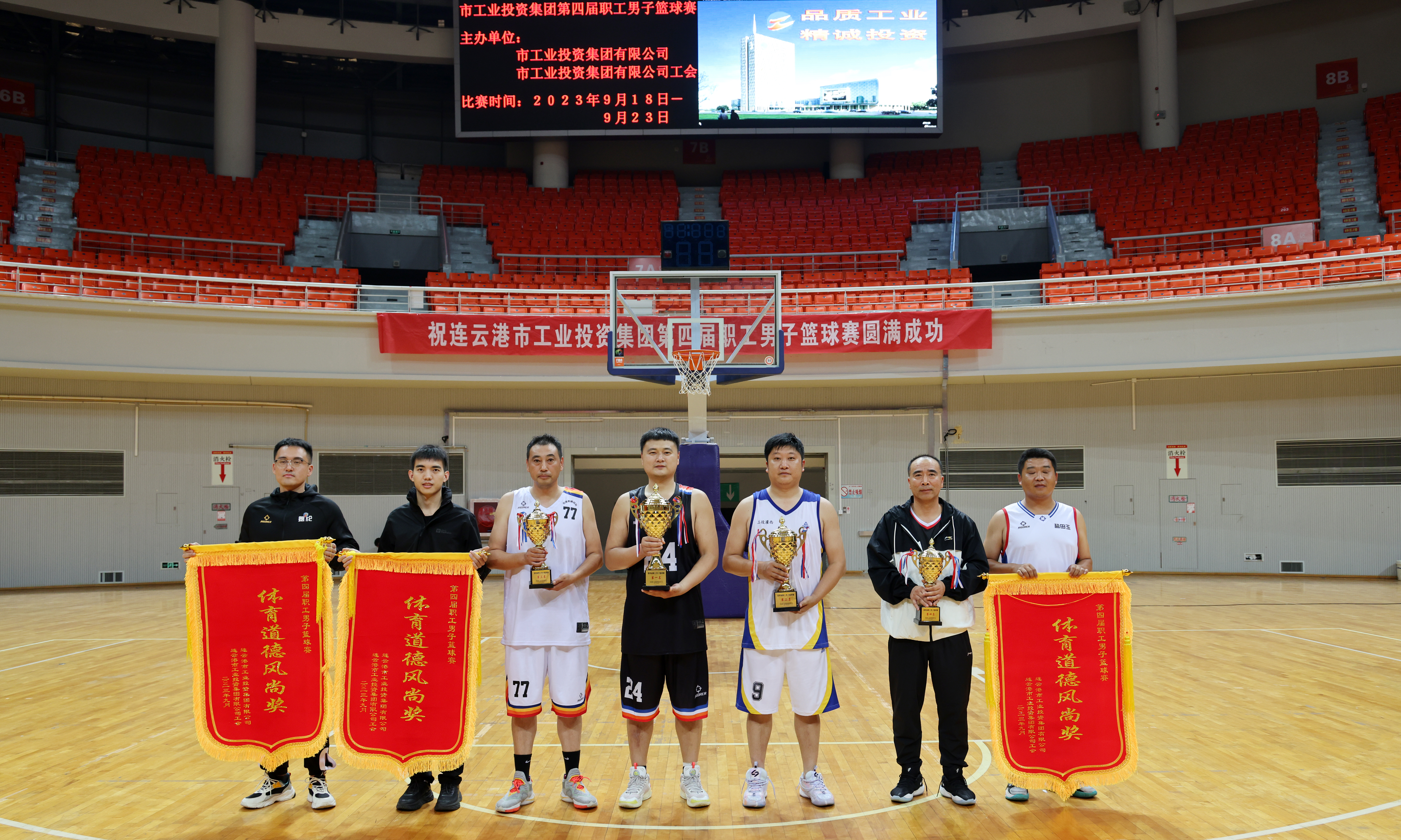 在市體育中心籃球館進行的前四名比賽中,徐圩投資公司代表隊、灌西投資公司代表隊、利海氯堿公司聯(lián)隊和臺北投資公司代表隊經(jīng)過一天的爭奪,分獲前四名。供電公司、青口投資公司、氨綸公司三支代表隊獲體育道德風尚獎。集團公司領導戴鴻鳴、劉承志出席閉幕式,并為獲獎代表隊頒獎。