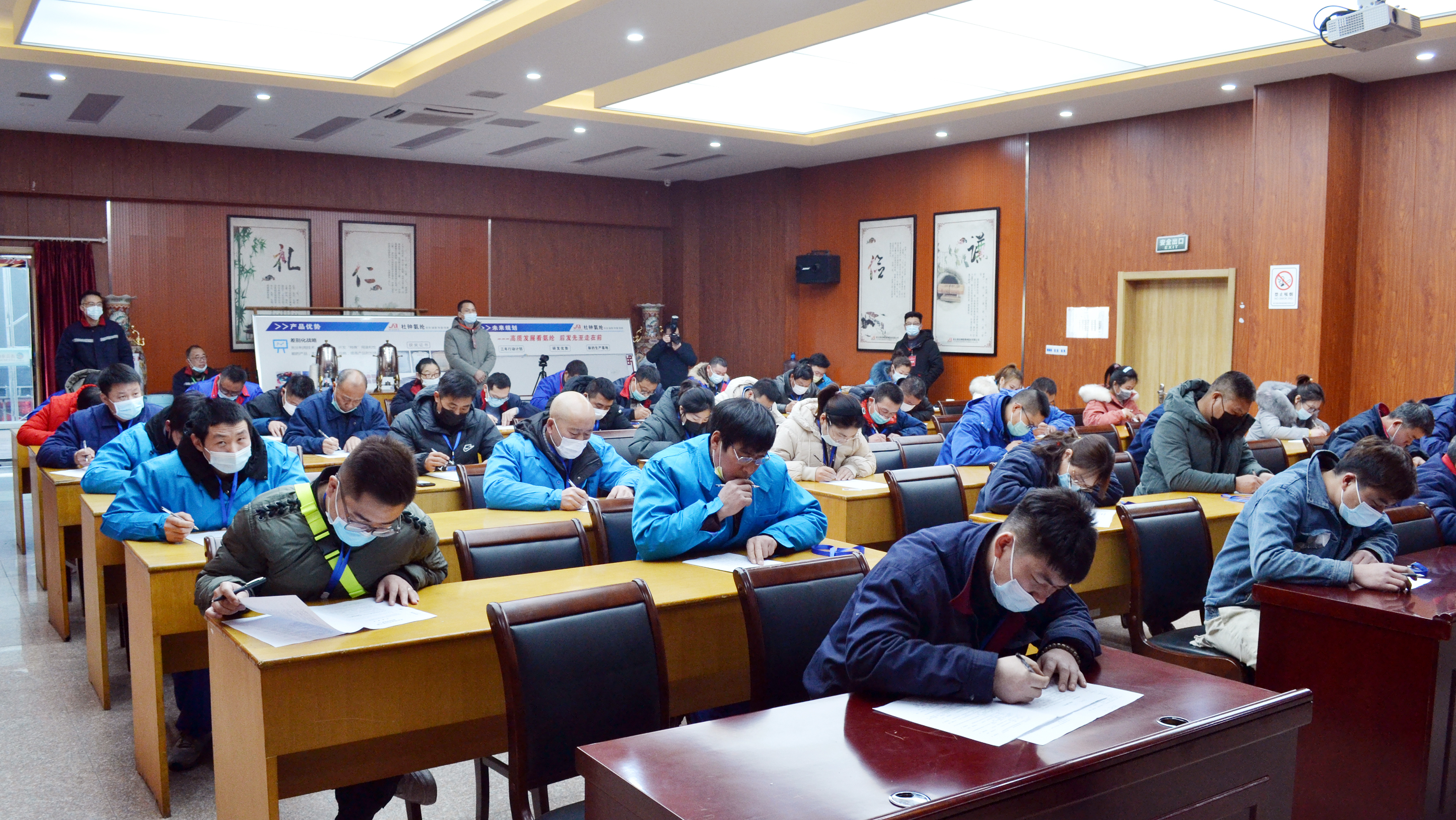 本次比賽分理論考試和實操考試兩部分,主要考核理論知識掌握程度和實踐操作能力。來自11家單位的41名選手同臺競技,展現(xiàn)了新時代“工匠精神”。經(jīng)過一天緊張激烈的角逐,氨綸公司孫克劍、陳習(xí)發(fā)、利海公司佘迪克分獲叉車、電焊、化驗技能比賽第一名,另有6名職工獲得二等獎,9名職工獲得三等獎。