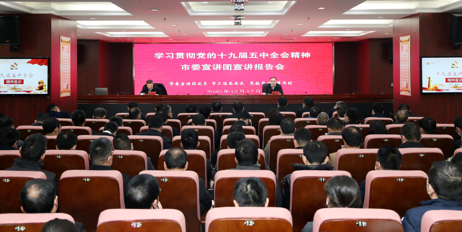 根據(jù)市委統(tǒng)一部署,12月17日,市委宣講團(tuán)來(lái)集團(tuán)開(kāi)展黨的十九屆五中全會(huì)精神宣講活動(dòng)。市委宣講團(tuán)成員、工信局局長(zhǎng)、黨組書(shū)記董作村作宣講報(bào)告。集團(tuán)公司黨委書(shū)記、董事長(zhǎng)楊龍主持宣講報(bào)告會(huì)。