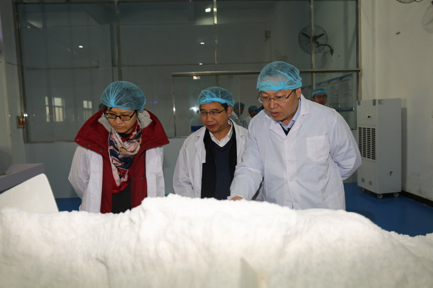 曹鑫副處長(zhǎng)一行參觀了金橋制鹽公司雪花鹽車間、加工鹽車間和包裝鹽車間,現(xiàn)場(chǎng)了解海食鹽生產(chǎn)工藝流程、產(chǎn)品銷售情況,并聽(tīng)取了公司目前生產(chǎn)過(guò)程、質(zhì)量管理以及市場(chǎng)銷售等情況匯報(bào)。曹鑫副處長(zhǎng)對(duì)金橋制鹽公司質(zhì)量管理工作給予了肯定,并希望公司能夠牽頭制訂海鹽生產(chǎn)企業(yè)工藝流程標(biāo)準(zhǔn),為國(guó)家制訂海鹽質(zhì)量管理辦法提供參考依據(jù)。