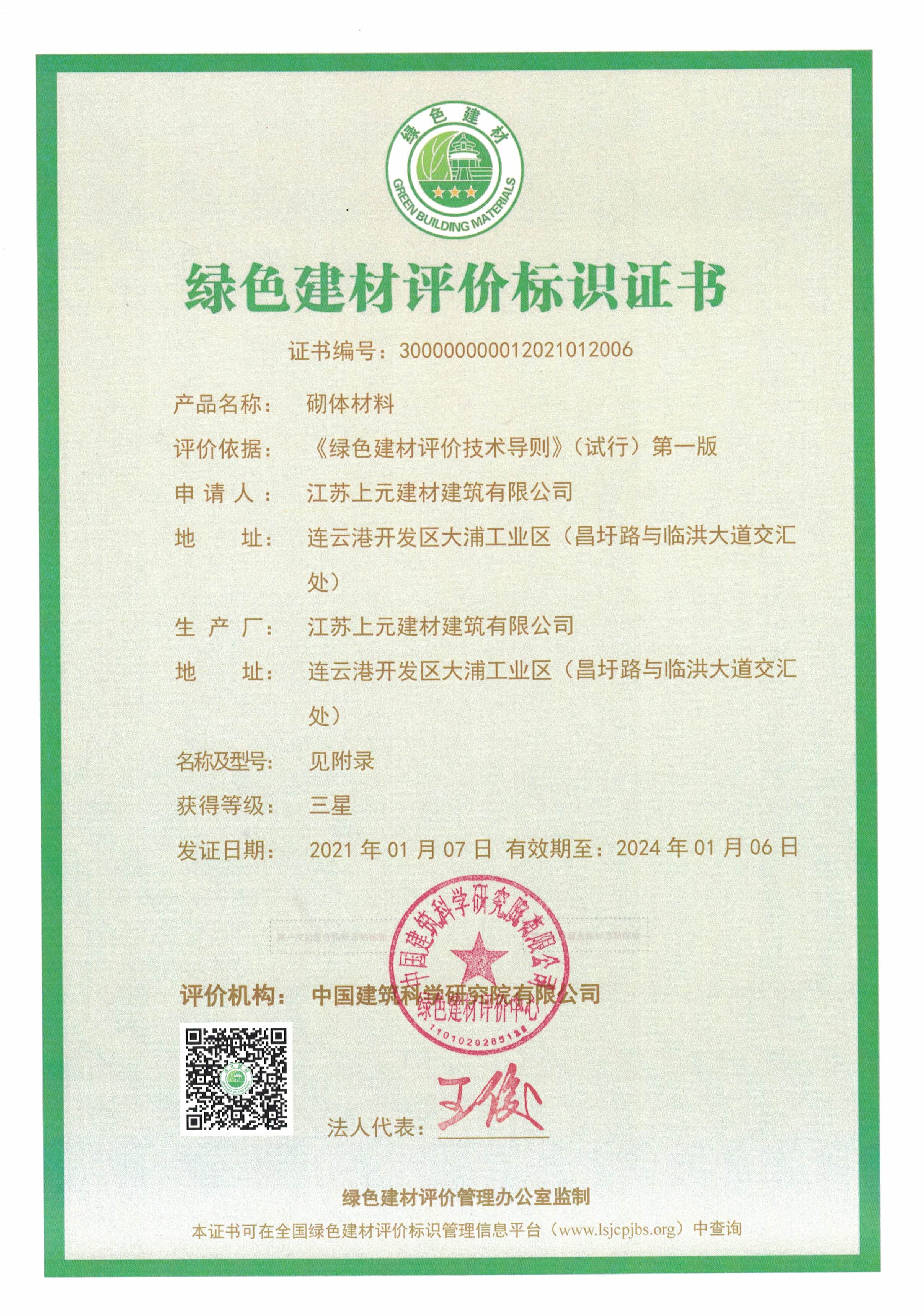 近日,房地產(chǎn)上元建材建筑公司成功獲得國家三星級綠色建材評價標識證書,為連云港市首家獲得該項榮譽的蒸壓加氣混凝土板(砌塊)類企業(yè)。