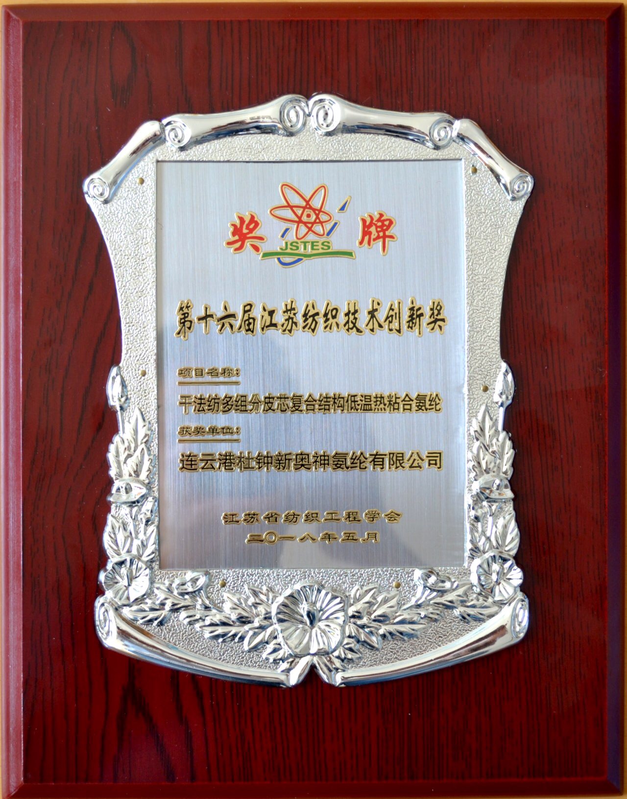5月30日,江蘇省紡織工程學(xué)會(huì)第十一屆會(huì)員代表大會(huì)暨“中孚達(dá)杯”紡織學(xué)術(shù)年會(huì)在江蘇南京順利舉行。我公司“干法紡多組分皮芯復(fù)合結(jié)構(gòu)低溫?zé)嵴澈习本]”獲得第十六屆江蘇省紡織技術(shù)創(chuàng)新獎(jiǎng),并在會(huì)議現(xiàn)場(chǎng)以展板形式隆重展出。