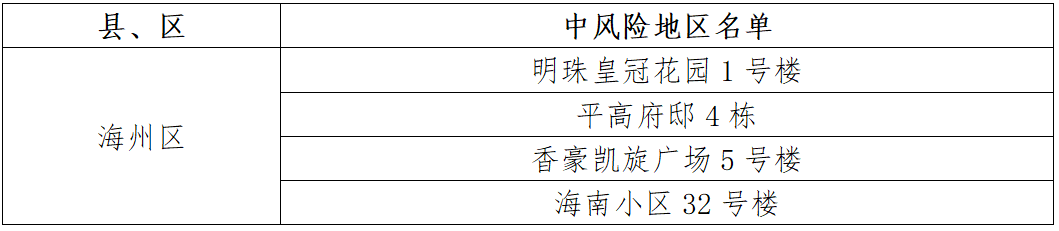 連云港市中風險地區(qū)(4個)