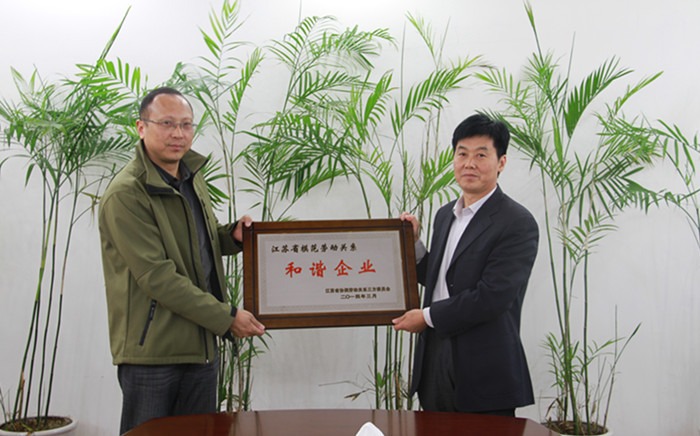 日前,江蘇省模范勞動(dòng)關(guān)系三方委員會(huì)辦公室印發(fā)《關(guān)于表彰江蘇省模范勞動(dòng)關(guān)系和諧企業(yè)與工業(yè)園區(qū)的決定》(蘇協(xié)勞【2014】2號(hào)),授予公司“江蘇省模范勞動(dòng)關(guān)系和諧企業(yè)”稱號(hào)。