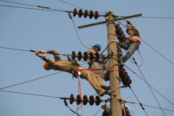 6月13日,公司集中力量,更新改造了青口鹽場(chǎng)6.7公里的35KV高壓線路,正式啟動(dòng)青口供電所主變?cè)鋈莞脑旃こ獭?/DIV> 該工程本需停電施工2天,為盡可能地縮短施工停電時(shí)間、方便用戶,公司事前多次組織人員現(xiàn)場(chǎng)勘察論證,編制施工方案,召開施工專題會(huì)議,提前到現(xiàn)場(chǎng)進(jìn)行技術(shù)交底。施工當(dāng)天,公司組織灌西、徐圩、臺(tái)北、臺(tái)南、青口等五個(gè)供電所150職工,參與大會(huì)戰(zhàn);清晨天剛放亮,公司領(lǐng)導(dǎo)和參戰(zhàn)職工就已趕到施工現(xiàn)場(chǎng)。