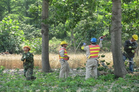 施工現(xiàn)場(chǎng)地形復(fù)雜,跨越路口8處、河線4處、通訊線光纜5處、10KV和0.4KV帶電線路7處,蝦塘10處。公司統(tǒng)一調(diào)度,分工協(xié)作,同步展開。在施工現(xiàn)場(chǎng),指定了專職安全員,各道路、線路跨越處搭設(shè)了防護(hù)架,設(shè)置了臨時(shí)警示牌和警示欄,收緊線過程中進(jìn)行巡線,確保施工安全。中午,公司在淮鹽大酒店制作工作簡(jiǎn)餐,送到工地,施工人員抽空輪流進(jìn)餐后,就繼續(xù)接著施工,并一直忙到晚上9點(diǎn)。