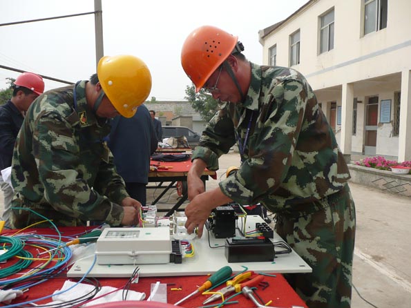 為了檢驗(yàn)一線員工的技術(shù)水平和實(shí)際操作能力,進(jìn)一步提高廣大員工立足崗位快速成才的積極性,營造 “比、學(xué)、趕、超”的學(xué)習(xí)氛圍,我公司于6月29日在臺(tái)南供電所舉辦了專業(yè)技術(shù)比武活動(dòng)。這次技術(shù)比武活動(dòng)分為面試考問、實(shí)際操作二部分。來自5個(gè)供電所的30名職工進(jìn)行了同場(chǎng)競(jìng)技。比武活動(dòng)項(xiàng)目有線路作業(yè)、配電安裝、變電業(yè)務(wù)操作等。線路作業(yè)賽場(chǎng)上,參賽隊(duì)員們頂著烈日,比上桿速度,比操作規(guī)范、比制作工藝。配電柜安裝賽場(chǎng)上,隊(duì)員們聚精會(huì)神,揮汗如雨,繪圖、打眼、組裝、接線……。變電業(yè)務(wù)操作現(xiàn)場(chǎng),各代表隊(duì)的選手認(rèn)真揣摩,填寫設(shè)備檢修申請(qǐng)單、任務(wù)票、操作票,密切配合、嫻熟操作開關(guān)設(shè)備。