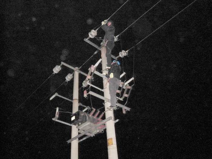 時下正是養(yǎng)殖揚水高峰期。3月6日晚20:37分,值班人員接到用戶電話反映:黃下線電壓不穩(wěn),變壓器及配電箱聲音異常,并發(fā)現(xiàn)高壓線路有火光現(xiàn)象,值班人員趙勇及時到現(xiàn)場。經(jīng)查看,是黃下線26號桿柱上斷路器,A相銅鋁樁頭養(yǎng)化接融不良所致。原因找到后,從21:05分組織人員進行搶修,搶修人員克服夜間天黑等諸多困難,21:56分及時恢復供電,保證了養(yǎng)殖搶水。(宋中文 李衛(wèi)田)