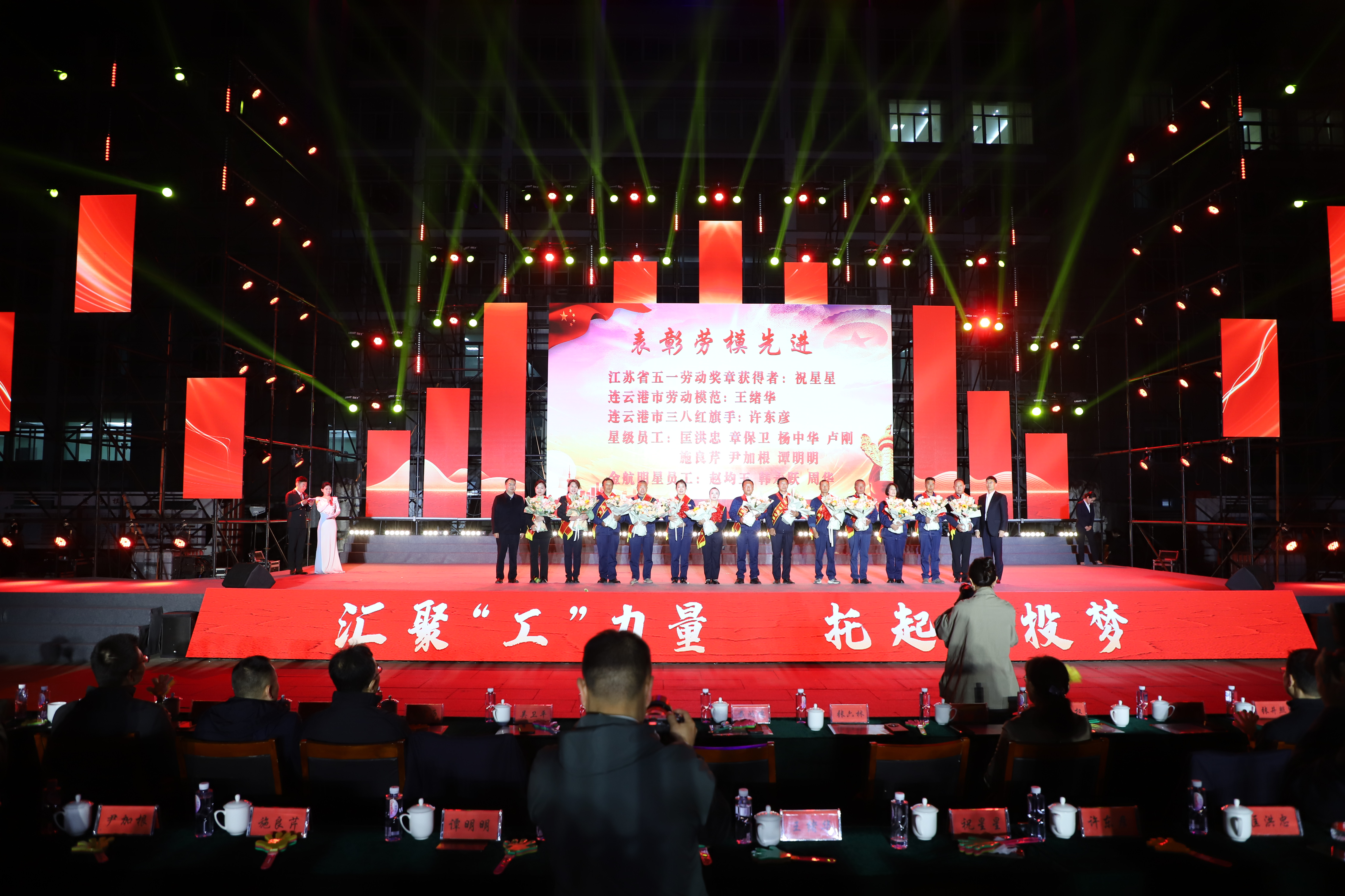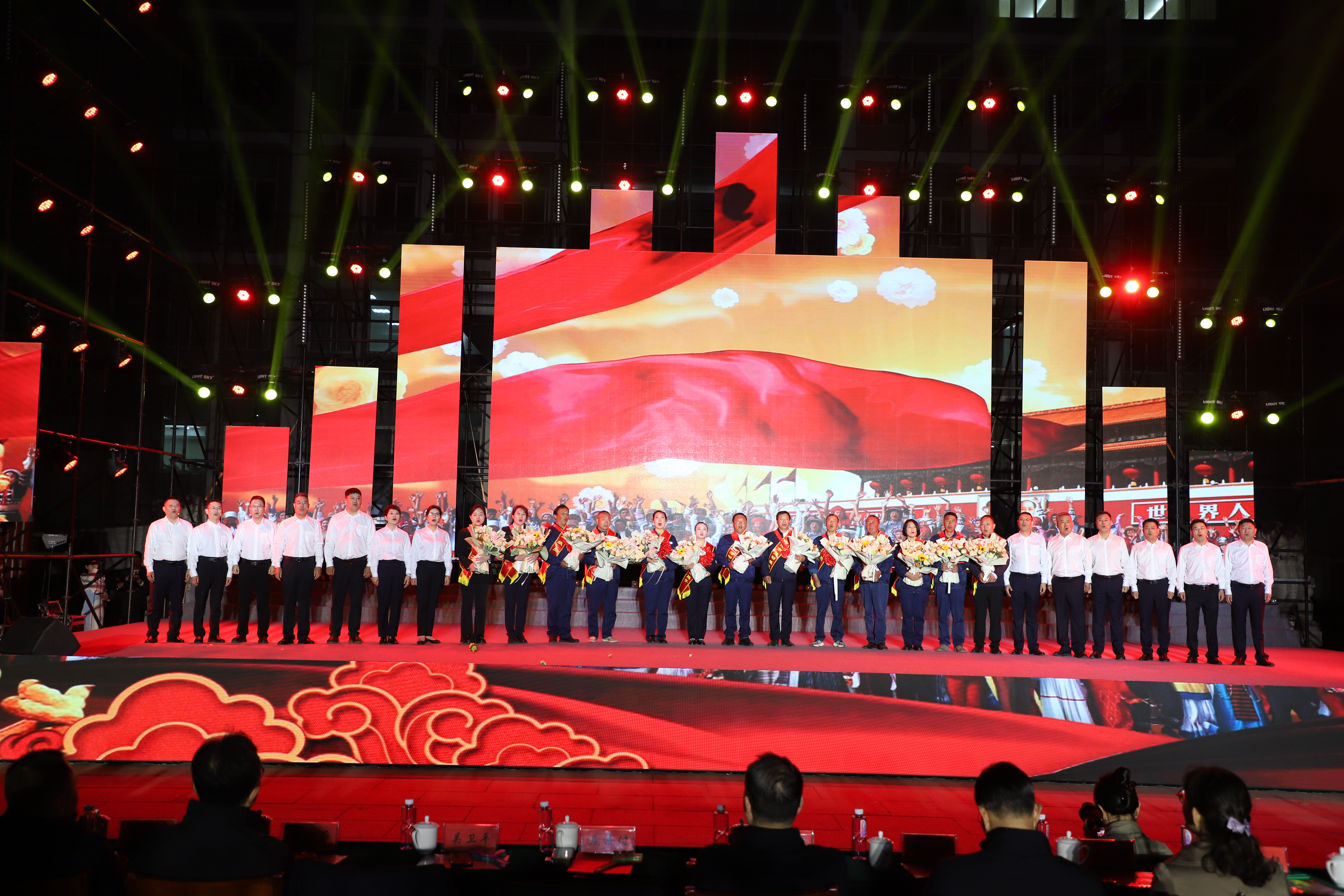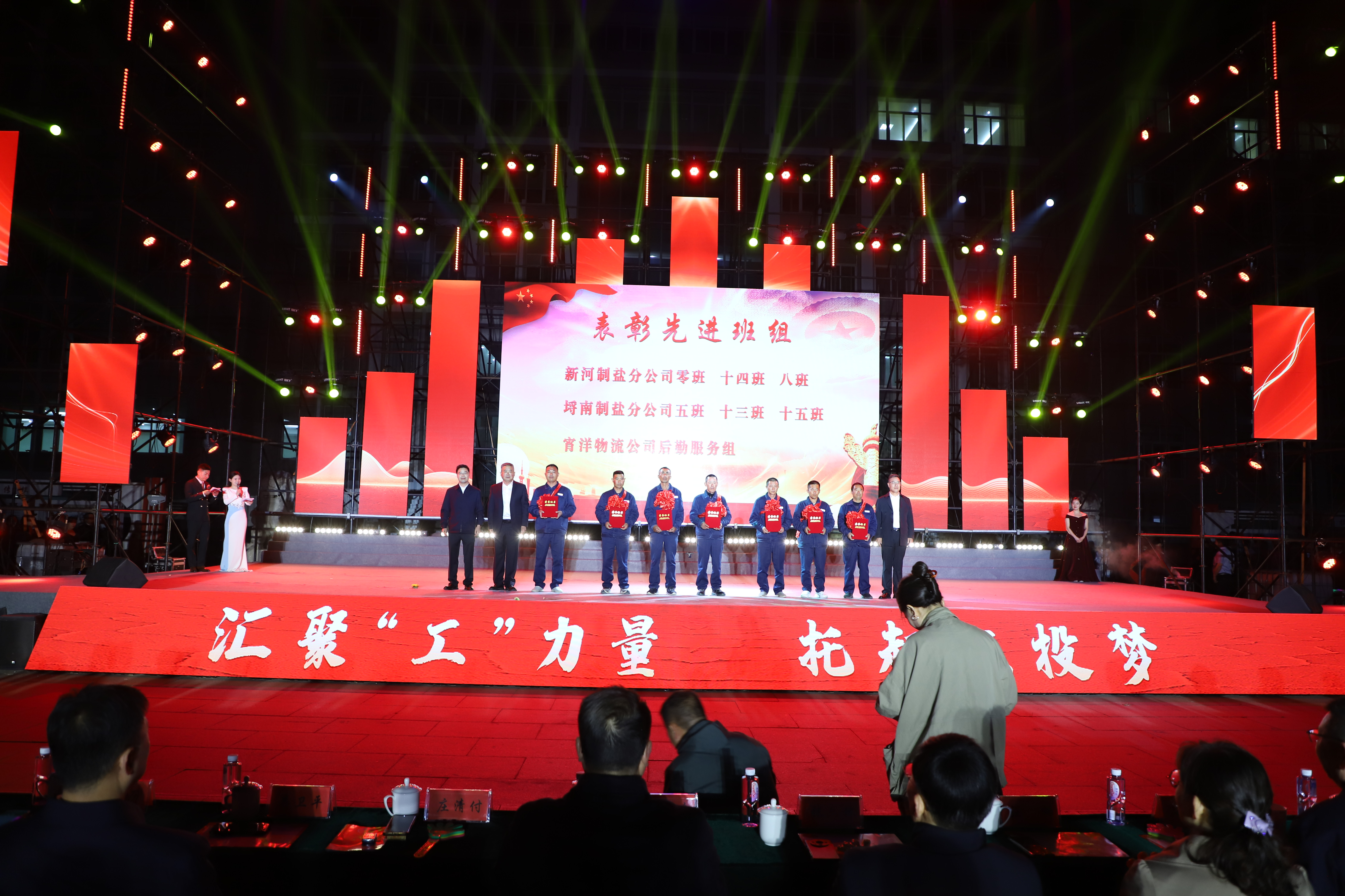 本次文藝匯演有歌舞、三句半、音樂快板、朗誦、相聲、歌曲串燒、歌曲獨(dú)唱、大合唱等豐富多彩的節(jié)目,其表演形式和精彩內(nèi)容引人入勝,火熱絢麗的舞臺、貼近職工生活的節(jié)目內(nèi)容、公司熱火朝天的奮斗場景,呈現(xiàn)了灌西人對企業(yè)的深沉情感和對工作生活的激情與熱愛。演出在開場群舞《盛世歡歌》拉開帷幕,整個演出分為“禮贊·勞動最光榮”“鑄魂·勞動最崇高”“閃耀·勞動最美麗”“輝煌·勞動最偉大”四個篇章,三句半《凝心聚力譜新篇》、舞蹈《沸騰的鹽灘》、音樂快板《后發(fā)先至看工投》等都是灌西職工自編自演的節(jié)目,充分展現(xiàn)了灌西員工朝氣蓬勃、奮發(fā)向上的精神面貌,以及對公司創(chuàng)新發(fā)展、職工幸福安康的美好祝愿。灌西公司黨委書記、董事長孫政權(quán)和金航公司黨總支書記、總經(jīng)理莊清付分別登臺獻(xiàn)藝,為大家表演了歌曲獨(dú)唱《我是一條小河》和配樂詩朗誦《我驕傲,我是中國人》,得到職工觀眾們熱烈的掌聲。小合唱《咱們工人有力量》、大合唱《新時代新家園》《沒有共產(chǎn)黨就沒有新中國》等節(jié)目把現(xiàn)場的氣氛推向了高潮,有力展現(xiàn)了全公司職工們激情澎湃、昂揚(yáng)奮進(jìn)的精神面貌。在文藝演出中間,還分別對公司各條戰(zhàn)線的勞模先進(jìn)代表、先進(jìn)單位、部門和班組進(jìn)行了表彰。(西宣)