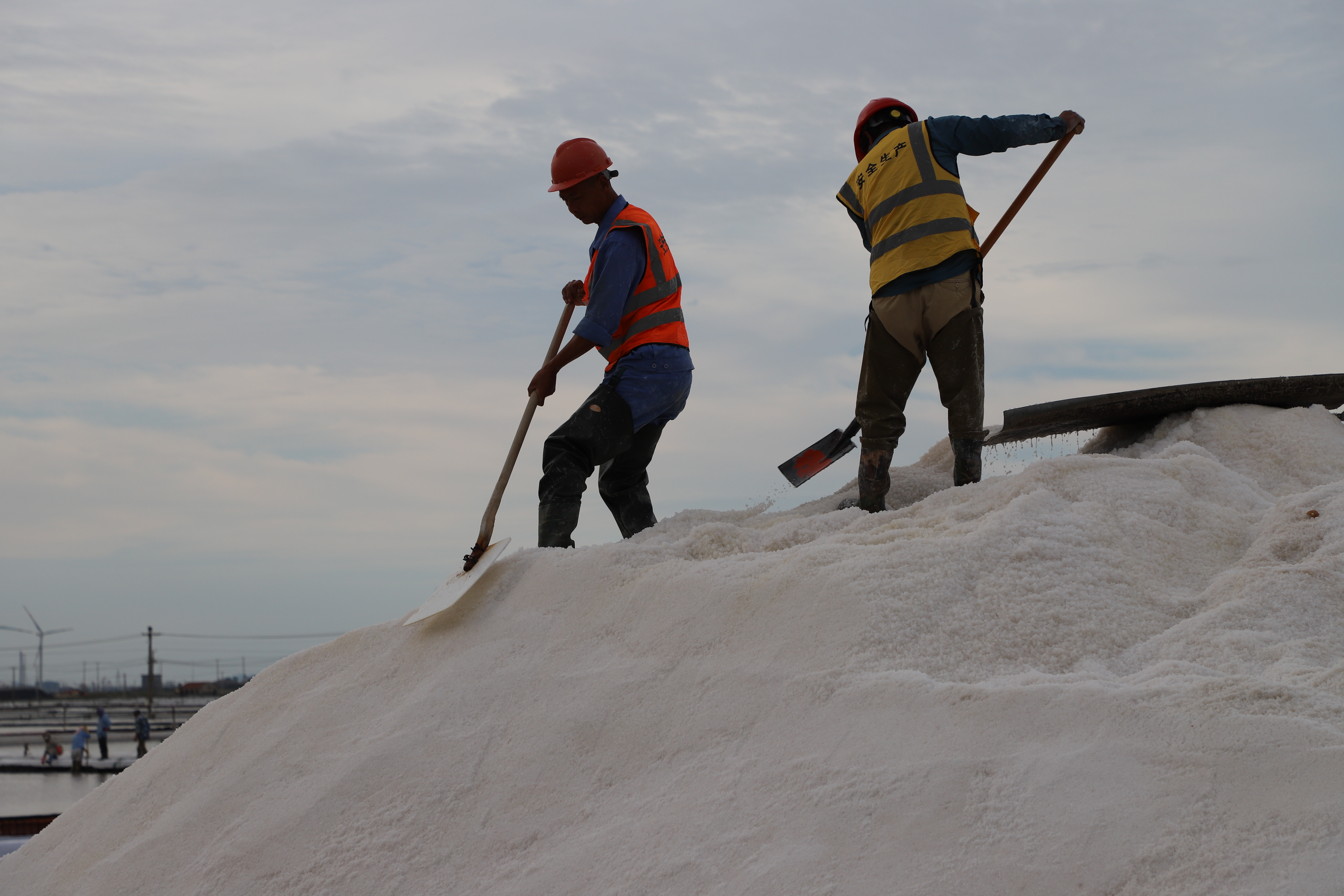 原鹽生產(chǎn)不松勁。每年的國慶假期總是與“秋扒”不期而遇。由于受連續(xù)的陰雨天氣影響,今年的秋扒工作一度延后。9月29日--9月30日,凌晨5點鐘,日曬鹽田的鹽圩小路像往常一樣成了一道最美的風景線,鹽工們?nèi)蔽溲b奔赴各自工作點位進行收拉塑布、排淡等工作。為了搶時間,抓進度,鹽工們緊鑼密鼓地忙碌起來,籌備扒鹽工作,天氣剛轉(zhuǎn)好,只見有的在整理塑布,有的破碴,10月2日,10臺扒鹽機組全部運轉(zhuǎn)起來,潔白的鹽廩逐漸擴大,節(jié)日期間將扒鹽30000余噸。