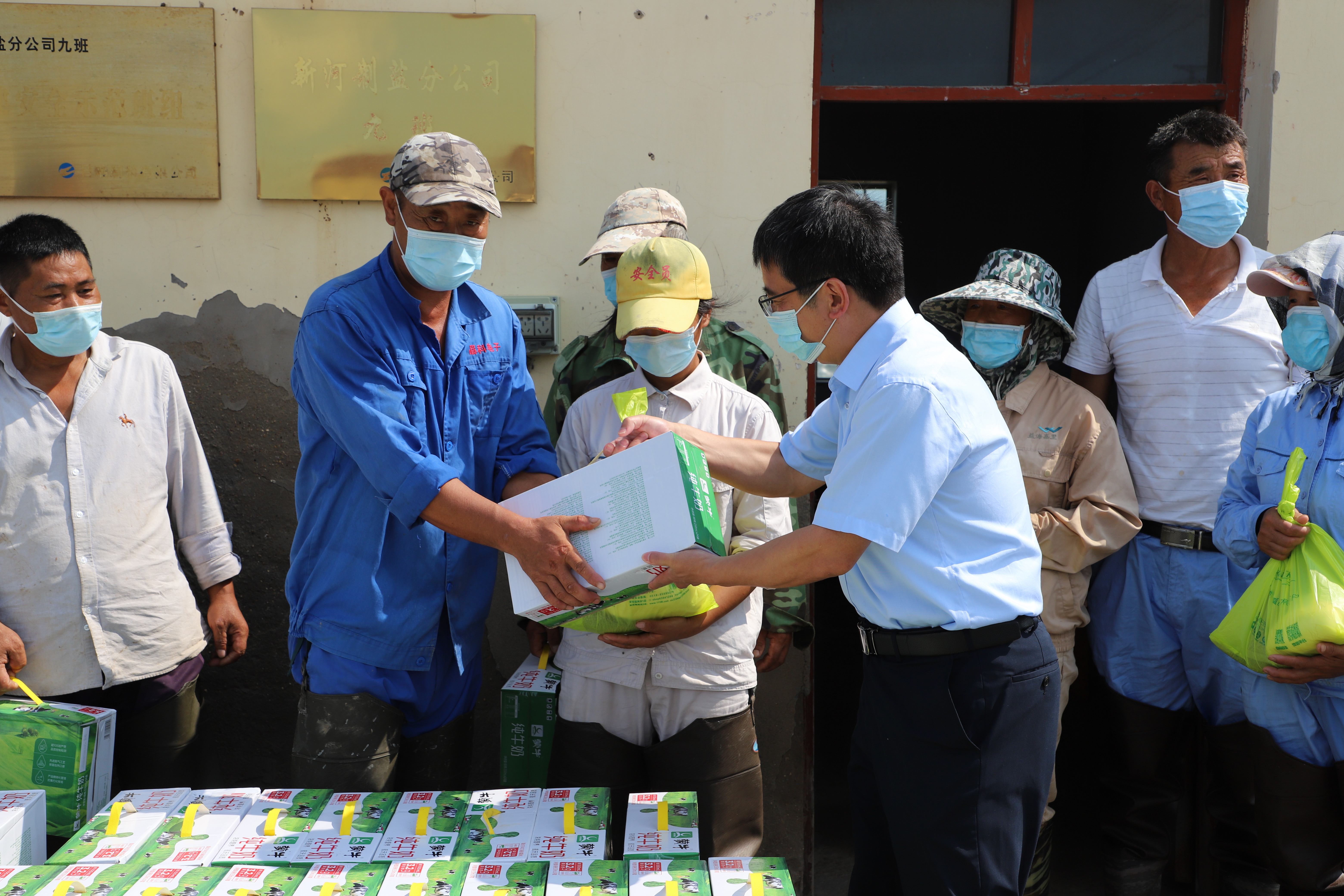 連日來,灌西投資公司廣大干群經歷著高溫酷暑天氣和嚴峻的新冠病毒疫情形勢的雙重考驗,堅守在鹽業(yè)生產一線的職工的身心健康牽動的集團領導的心,8月3日上午,集團公司常務副總經理楊國新、工會副主席陸向東一行來灌西公司看望慰問高溫下堅守崗位的鹽業(yè)生產工人,并送上牛奶、白糠、綠豆、大米等清涼消暑慰問品。
