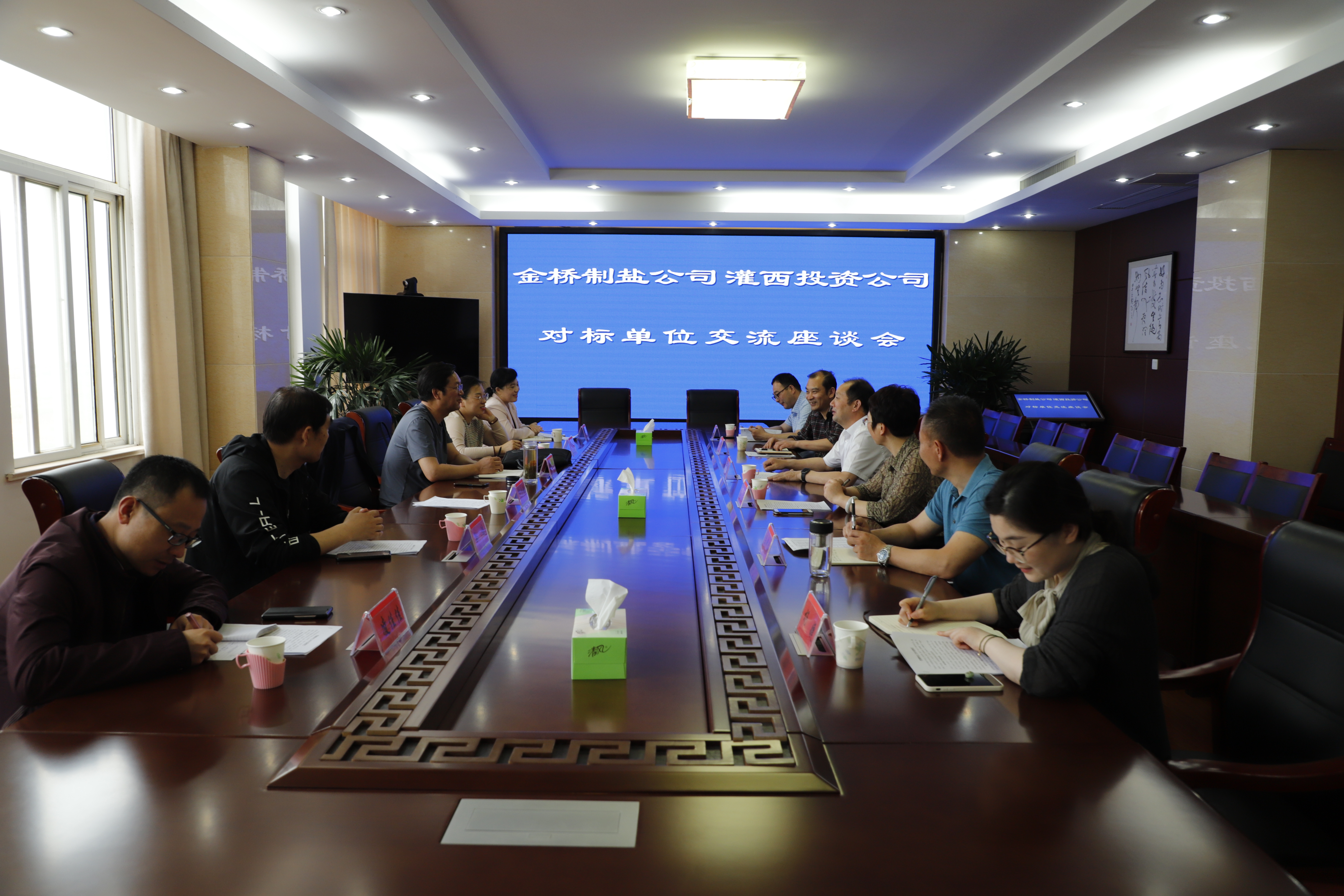 6月3日下午,江蘇金橋制鹽公司黨委副書記、工會(huì)主席曹開明率調(diào)研組一行,來灌西投資公司進(jìn)行對(duì)標(biāo)單位交流座談。灌西投資公司黨委書記、董事長、總經(jīng)理李國文,黨委副書記、工會(huì)主席王宏及黨群部門負(fù)責(zé)人陪同交流。