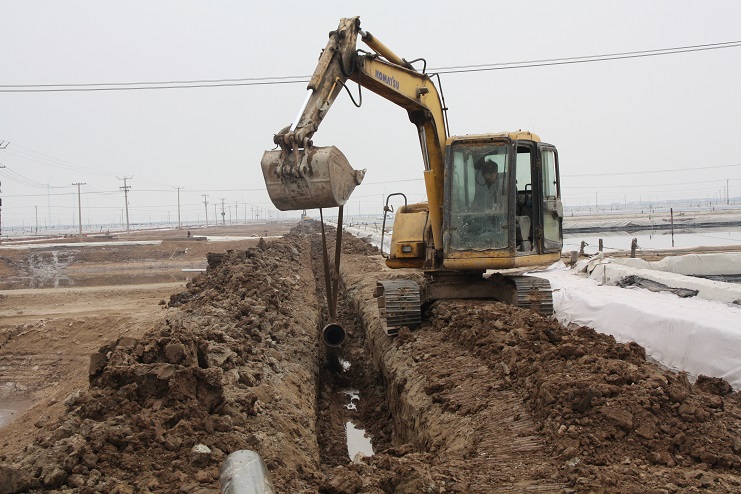 4月5日上午,日曬制鹽公司灘頭機械轟鳴,兩臺挖掘機正按照事先分工,有序的將深埋在地下的廢舊除硫管道挖掘出來。據(jù)了解,這些廢舊除硫管道按照原先設(shè)計,主要用于承擔鹵水除硫后的輸送工作,后因生產(chǎn)工藝的改進,導(dǎo)致管道一直處于閑置狀態(tài)。而此次回收并再次利用這些管道主要是為了在進一步改進生產(chǎn)工藝的基礎(chǔ)上,最大化節(jié)約生產(chǎn)成本。據(jù)介紹,目前日曬制鹽公司在生產(chǎn)中主要采取串聯(lián)式加鹵的方式進行,除硫后的鹵水無論輸送至哪一格塊,都必須按照先后順序依次經(jīng)過前排格塊,這不僅大大降低了輸送效率,也不利于對鹵水的有效管理,更造成了一部分浪費。相比較而言,通過改串聯(lián)式加鹵為并聯(lián)式加鹵后,鹵水將會從除硫池直供缺鹵格塊,在提高供鹵效率的同時,也能夠有效降低跑冒滴漏現(xiàn)象的發(fā)生。