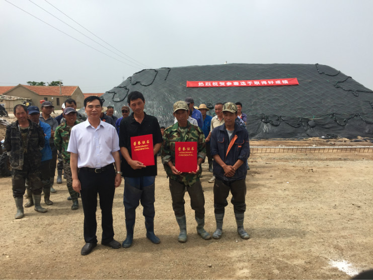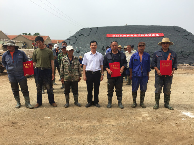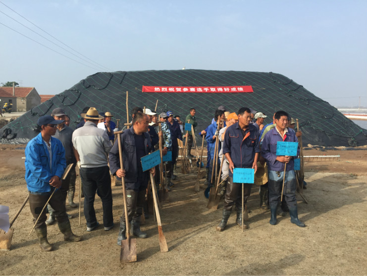 比賽開始前,生產(chǎn)服務(wù)公司經(jīng)理王緒前首先就天溝建設(shè)要求、評分標準等事項進行了現(xiàn)場說明。7點20分,隨著裁判員的一聲令下,比賽正式開始。參賽選手們按照賽前抓鬮序號,迅速投入到比賽中。賽場上,每一組選手都分工明確,澆水、翻泥、踩實、做埝、整平一氣呵成,大家都表現(xiàn)的極為熟練,充分展示了參賽選手扎實的基本功。比賽中,三位裁判在比賽場地來回巡查,認真記錄每一組參賽選手的勞動過程,力求做到公平、公正。9點20分,隨著最后一組選手的工作完成,比賽正式結(jié)束。隨即,三位裁判又根據(jù)比賽過程中的記錄情況結(jié)合最終工程質(zhì)量對每一參賽小組進行綜合評分。最終,來自埒南制鹽分公司的章保衛(wèi)、高明成榮獲比賽第一名;江海兵、張春連以及尹步松、汪禮兵兩組選手榮獲第二名;新河制鹽分公司朱明、戴繼明,郁雷敏、李正軍,楊春旭、史春海三組選手榮獲第三名。