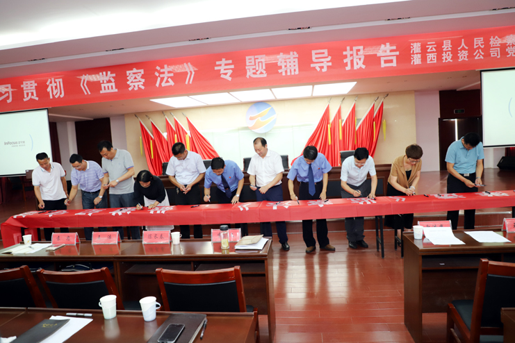 此次集中培訓(xùn)只是我公司深入學(xué)習(xí)貫徹監(jiān)察法的舉措之一,按照公司紀(jì)委統(tǒng)一部署,把監(jiān)察法納入公司干部必修課程及各類黨員培訓(xùn)內(nèi)容,通過(guò)座談會(huì)、報(bào)告會(huì)等多種形式,深化學(xué)習(xí)培訓(xùn)效果,把學(xué)習(xí)培訓(xùn)延伸到基層一線。會(huì)后全體與會(huì)人員集體在“學(xué)深學(xué)透《監(jiān)察法》,做遵紀(jì)守法國(guó)企人”橫幅上簽字承諾。(張明建)