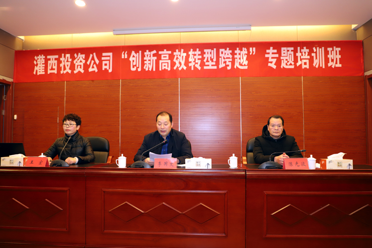 為提高干部綜合素質(zhì),加快推進(jìn)公司創(chuàng)新轉(zhuǎn)型發(fā)展。12月19日上午,灌西投資公司中層管理人員共60人前往灌云縣委黨校進(jìn)行為期兩天的培訓(xùn)。黨委書記、董事長(zhǎng)、總經(jīng)理李國(guó)文、縣委黨校校長(zhǎng)陳光波出席開班儀式并講話。