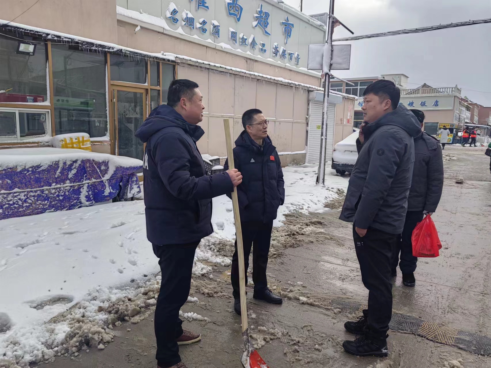 在除雪工作中,南翼公司領導班子合理分配清雪人員,身先士卒,揮舞著鐵锨、掃帚、帶領全體員工開展轄區(qū)內(nèi)積雪清掃工作。大家團結協(xié)作、干勁十足,掃的掃、鏟的鏟、干的熱火朝天。同時為保障轄區(qū)內(nèi)居民出行安全,對片區(qū)下水道缺失蓋板進行更換。