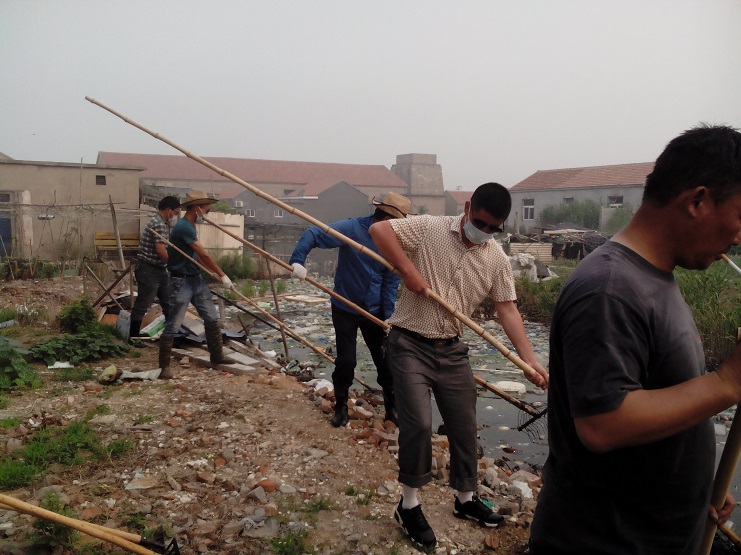 大家早上7點集合后到所在負責片區(qū):化工區(qū)家屬區(qū)北面的河邊,用耙子打撈河中垃圾。大家不顧高溫天氣、垃圾長期在河中腐蝕的異味,用大耙撈,小耙拉,將河中的垃圾運上來。河中懸浮生長的雜草最難清理,大家齊心協(xié)力,用木筏撐著,找繩子拉,經(jīng)過一上午的忙碌,垃圾被清理了,河道暢通了,為居民創(chuàng)造了整潔的環(huán)境,更為雨季到來時河道的排淡能力發(fā)揮了較大的作用。