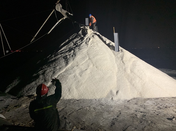 自3月3日上午,埒南制鹽15個(gè)生產(chǎn)班組共出動5臺扒鹽機(jī)組投入春扒工作,截止3月9日,5臺機(jī)組共計(jì)扒完結(jié)晶池51塊,共扒原鹽2.5萬余噸。