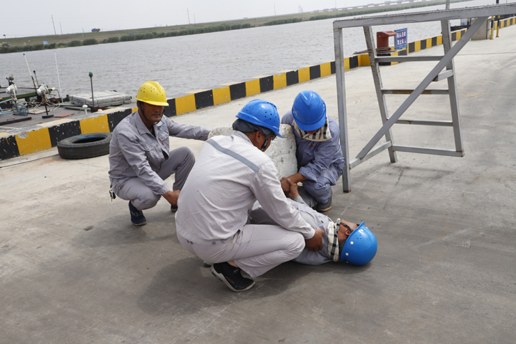 為抓好安全管理各項工作,全面落實以“消除事故隱患,筑牢安全基礎(chǔ)”為主題的全國“安全生產(chǎn)月”活動。6月22日,宵洋物流公司在碼頭舉行砸人事故和中暑事故應(yīng)急救援演練活動。投資公司領(lǐng)導(dǎo)和灌云縣交通局相關(guān)人員參加觀摩。