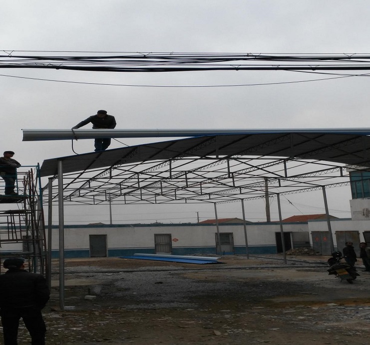自4月初承接我場(chǎng)中二圩愛(ài)心市場(chǎng)大棚制作任務(wù)后,機(jī)電服務(wù)公司班子認(rèn)真進(jìn)行研究制作方案,購(gòu)買(mǎi)優(yōu)質(zhì)材料,合理安排技術(shù)人員進(jìn)行制作,做到多頭并進(jìn),加班加點(diǎn),勞模王緒華、星級(jí)員工程洪連身先士卒,其他員工積極參與,到4月19日,全面、安全完成制作安裝任務(wù)。(圖為現(xiàn)場(chǎng)施工中)(胡亞?wèn)|)