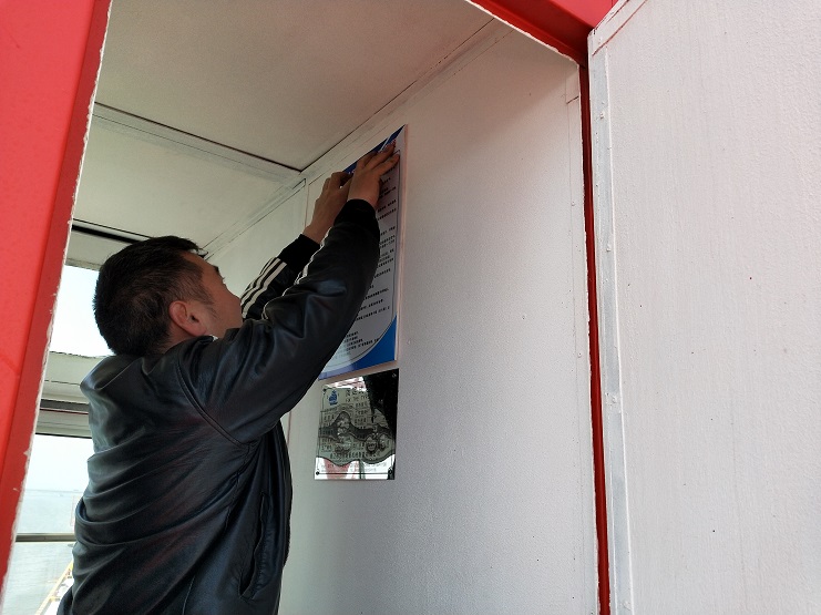 宵洋物流公司強(qiáng)化安全生產(chǎn)工作。近期,宵洋物流公司維修人員,在碼頭起重吊機(jī)底座、駕艙內(nèi)張貼安全警示和吊機(jī)駕駛員規(guī)章制度圖片,時(shí)刻提醒碼頭作業(yè)人員安全作業(yè)。自碼頭噸袋吊裝業(yè)務(wù)三月十八日正式啟動(dòng)以來,安全作業(yè)狀況良好。(宵洋物流公司)