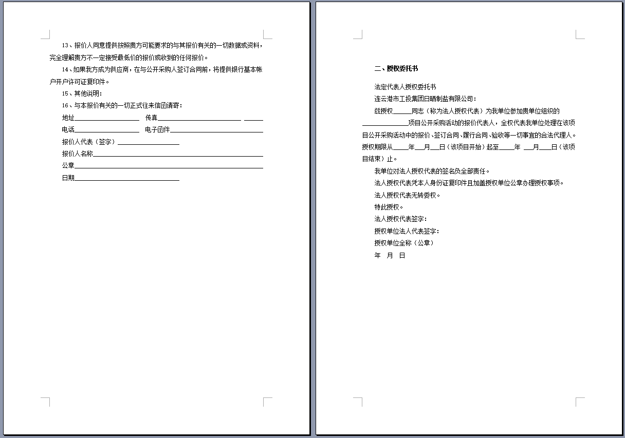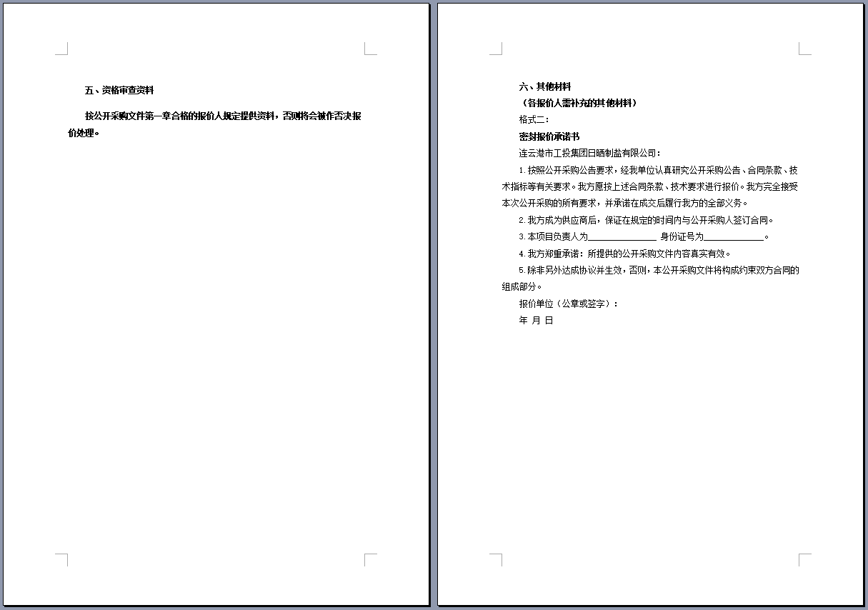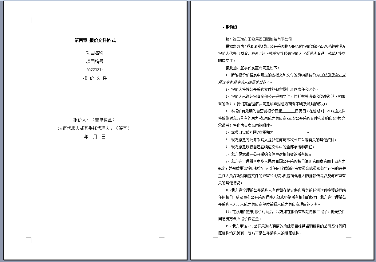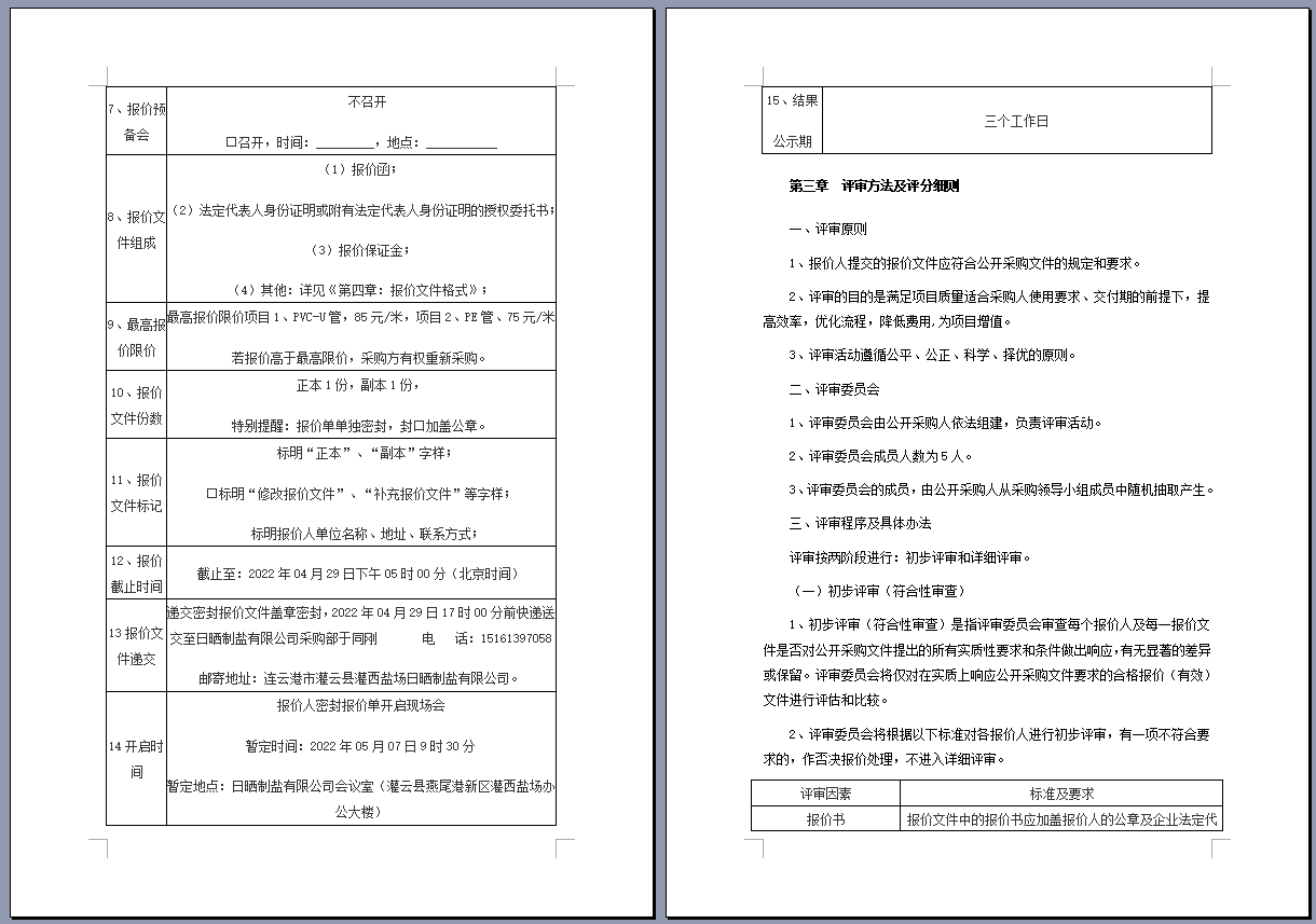 連云港市工投集團日曬制鹽有限公司管道采購項目 公開采購文件
