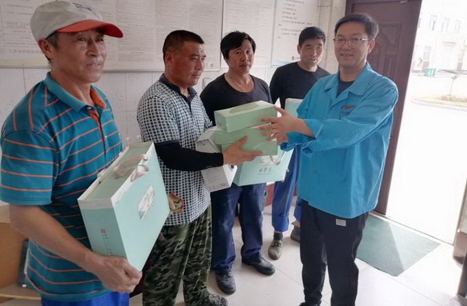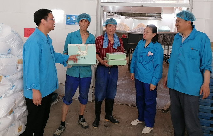 6月8日,我公司工會開展夏季“送清涼”活動,黨委副書記、工會主席曹開明一行,為高溫下的一線職工送去了茶葉、菊花茶等防暑降溫用品。