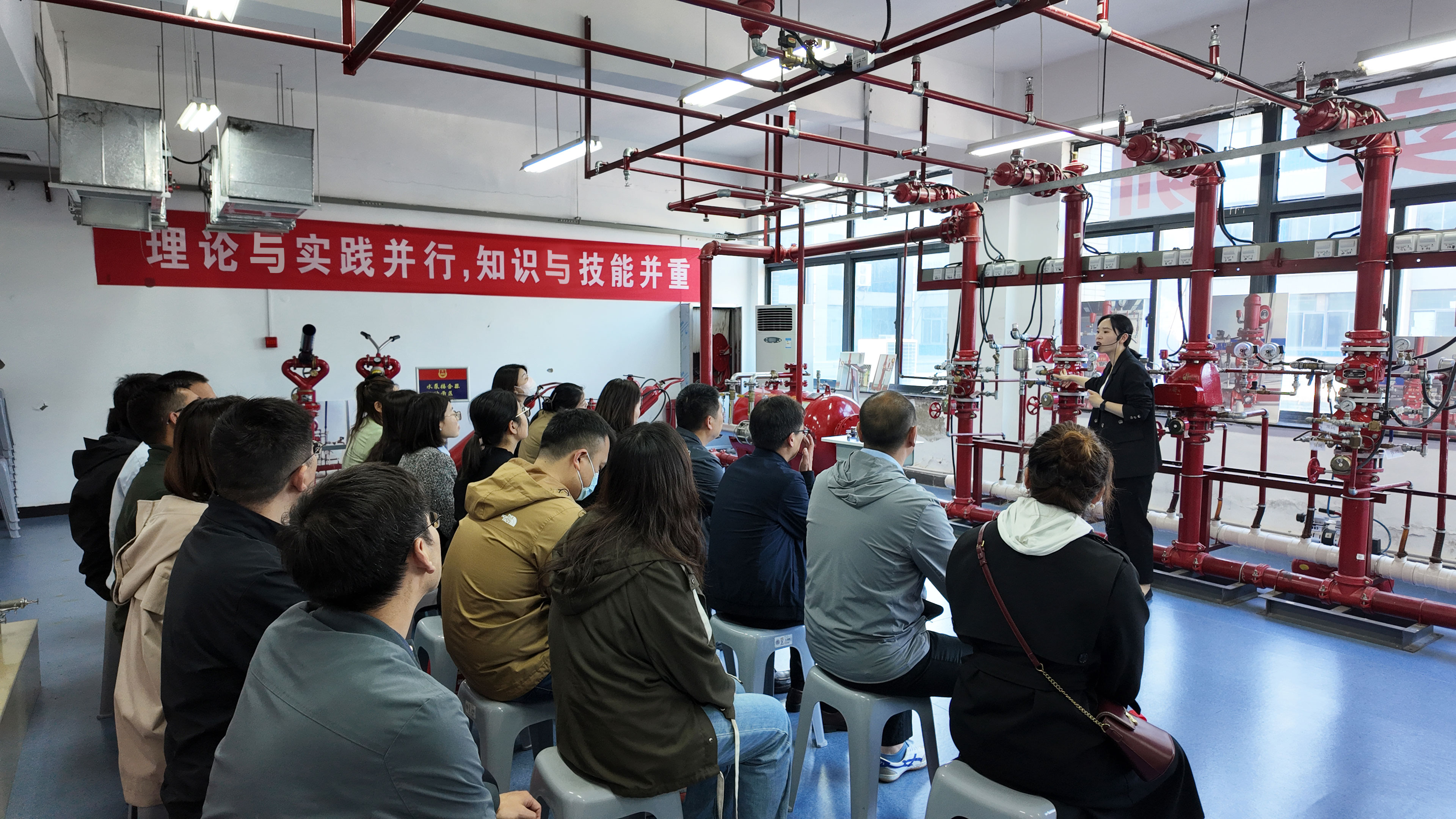 培訓(xùn)中,具有注冊消防工程師資質(zhì)的培訓(xùn)老師運(yùn)用理論授課、實(shí)地講解、多媒體互動等多種教學(xué)方式,使參訓(xùn)職工快速了解并掌握建筑常見消防設(shè)施及消防器材的動作原理和操作技能。“授人以魚,不如授人以漁。”在培訓(xùn)過程中,老師利用學(xué)校獨(dú)特的現(xiàn)場教學(xué)場景,針對九小場所“三合一”現(xiàn)象、違規(guī)違章動火作業(yè)、常見電氣火災(zāi)隱患等實(shí)際問題進(jìn)行了深入剖析和講解,并重點(diǎn)強(qiáng)調(diào)了日常消防防范管理工作的程序和重點(diǎn),令大家受益匪淺。