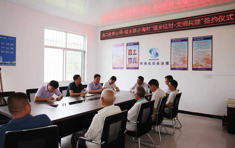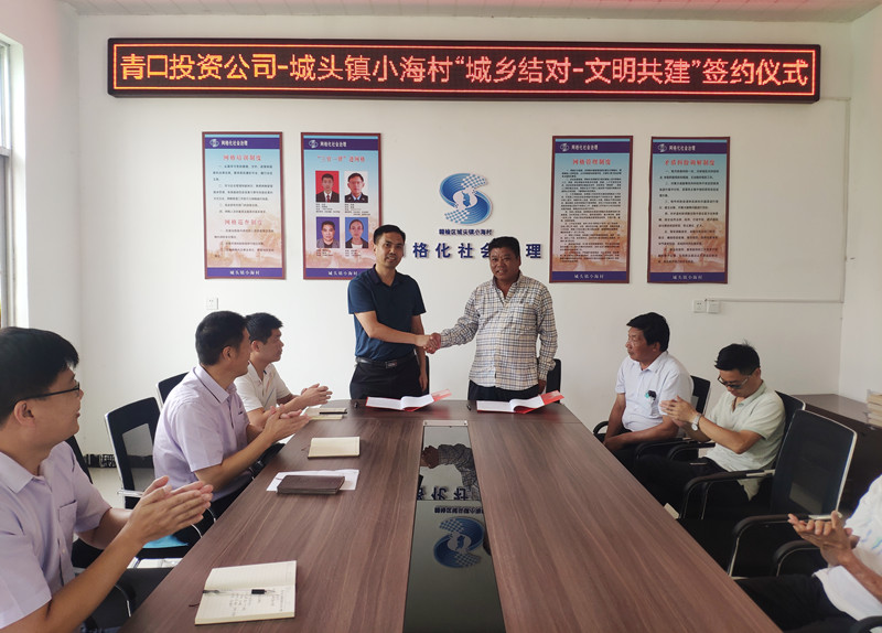 為充分發(fā)揮省級(jí)文明單位示范帶動(dòng)作用,推進(jìn)城鄉(xiāng)文明一體發(fā)展,為構(gòu)筑道德風(fēng)尚建設(shè)高地、建設(shè)社會(huì)文明程度高的新江蘇作出積極貢獻(xiàn),8月26日上午,青口投資公司與城頭鎮(zhèn)小海村“城鄉(xiāng)結(jié)對(duì) 文明共建”簽約儀式在小海村舉行。