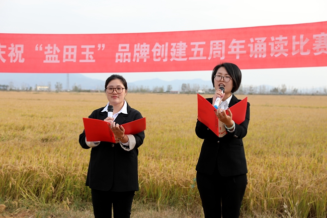 ? ?金秋十月,稻浪播香,又到一年豐收季。為慶祝“鹽田玉”品牌創(chuàng)建五周年,營造企業(yè)文化氛圍,展現(xiàn)職工群眾健康向上的精神風(fēng)貌,10月25日下午,投資公司于萬畝稻田間舉行慶祝“鹽田玉”品牌創(chuàng)建五周年誦讀比賽。公司黨委委員、副總經(jīng)理周緒祥,各單位黨政工負責(zé)人、機關(guān)全體管理人員,大新農(nóng)場條田工,米業(yè)營銷中心生產(chǎn)銷售團隊參加活動。