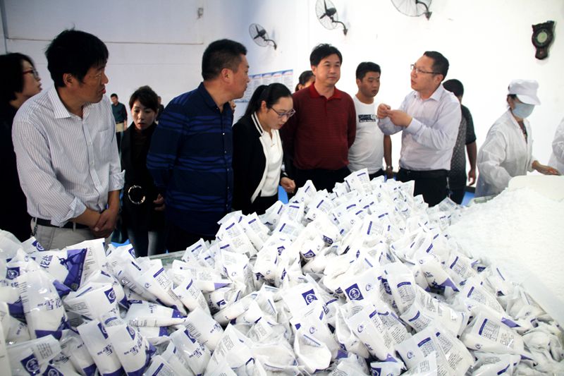在金橋制鹽的企業(yè)文化墻前,朱董事長(zhǎng)為大家詳細(xì)介紹了公司在鹽業(yè)體制改革下面臨的困難和挑戰(zhàn),公司是全國(guó) 99 家定點(diǎn)原鹽生產(chǎn)企業(yè),江蘇 5 家生產(chǎn)企業(yè)之一,連云港市唯一一家定點(diǎn)食鹽生產(chǎn)企業(yè),國(guó)家不在新設(shè)定點(diǎn)廠家的前提下,面臨食鹽是供過(guò)于求的買方市場(chǎng),價(jià)格競(jìng)爭(zhēng)激烈的新形勢(shì),企業(yè)只有找準(zhǔn)定位,自加壓力來(lái)擴(kuò)大優(yōu)勢(shì),才能要這次大變革中迎難而上。掛職干部一行在雪花鹽生產(chǎn)和小包裝食鹽的包裝車間參觀了各類鹽產(chǎn)品生產(chǎn)的工藝流程。(杜 娟)