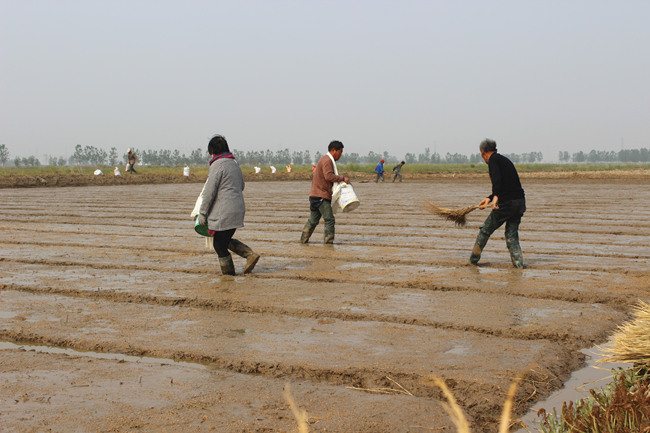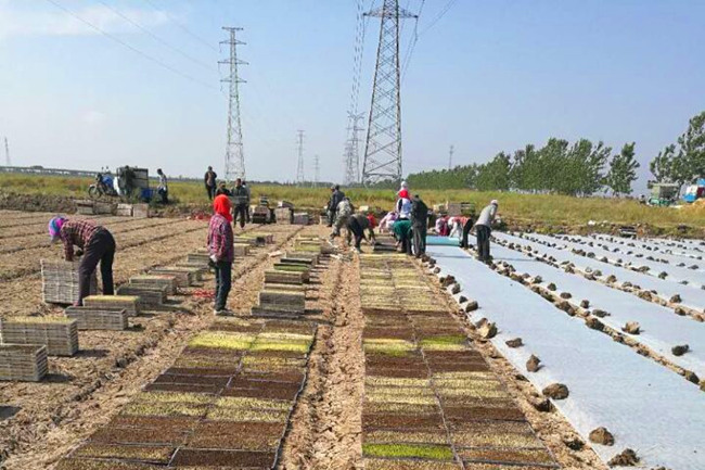 早在4月份,深入田間,就可見緊鑼密鼓的落谷育秧場景。明威公司4月15日完成秧田開溝、打埂、整平,17日開始浸種工作,并同步對(duì)秧田進(jìn)行上水洗鹽排堿及上水整平;4月22日正式實(shí)施秧田落谷工作,截止26日,全面完成自種2485畝秧田落谷工作。