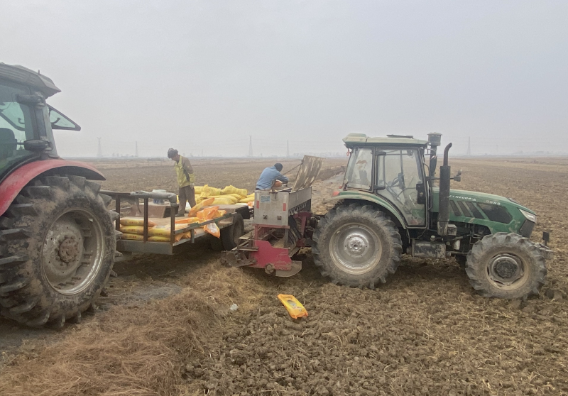 近日,大新農(nóng)場積極組織小麥地開溝施肥播種作業(yè)。工作人員在農(nóng)場的小麥種植區(qū)忙著翻犁、整土、施肥,有序推進(jìn)小麥種植工作。(王璐)