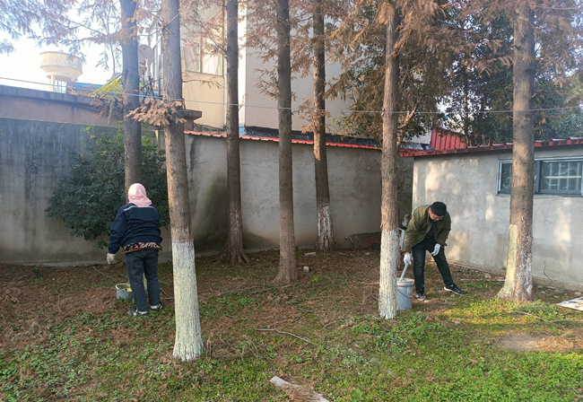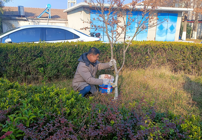 隨著天氣慢慢轉(zhuǎn)涼,為了減少綠化樹木病蟲害發(fā)生,泰祥公司對(duì)場區(qū)綠化樹木開展冬季“涂白行動(dòng)”,為保護(hù)綠化樹木越冬做好準(zhǔn)備。