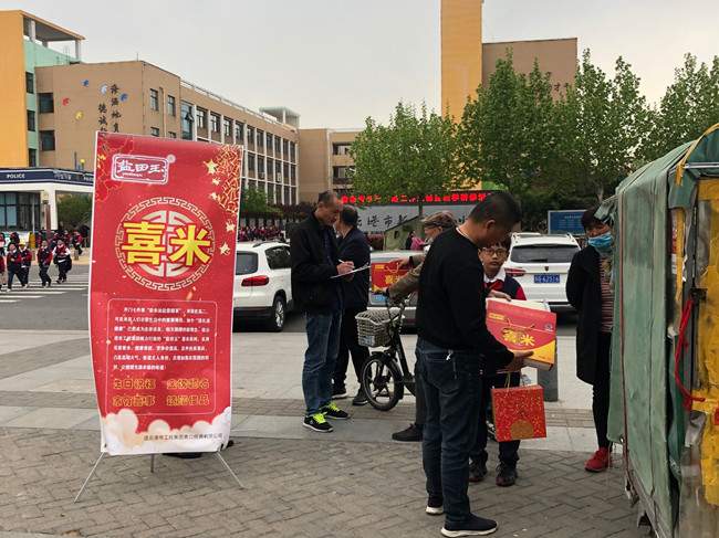 為進一步提升“鹽田玉”喜米的品牌影響力,米業(yè)營銷中心進一步精確目標、精準定位、細化市場,利用“喜米”品牌的獨特性,深入人員密集的學校主動對等候學生的家長們開展宣傳工作,向家長們詳細介紹“鹽田玉”喜米的各方面優(yōu)勢,促使“喜米”品牌成為生日宴、升學宴回禮的最佳選擇,進一步提高品牌的認知度、知名度、忠誠度。(嚴鑫)