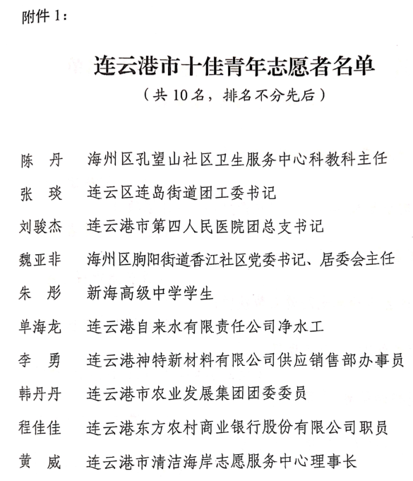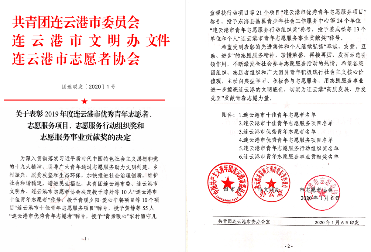 公司員工李勇榮獲“連云港市十佳青年志愿者”稱號(hào)