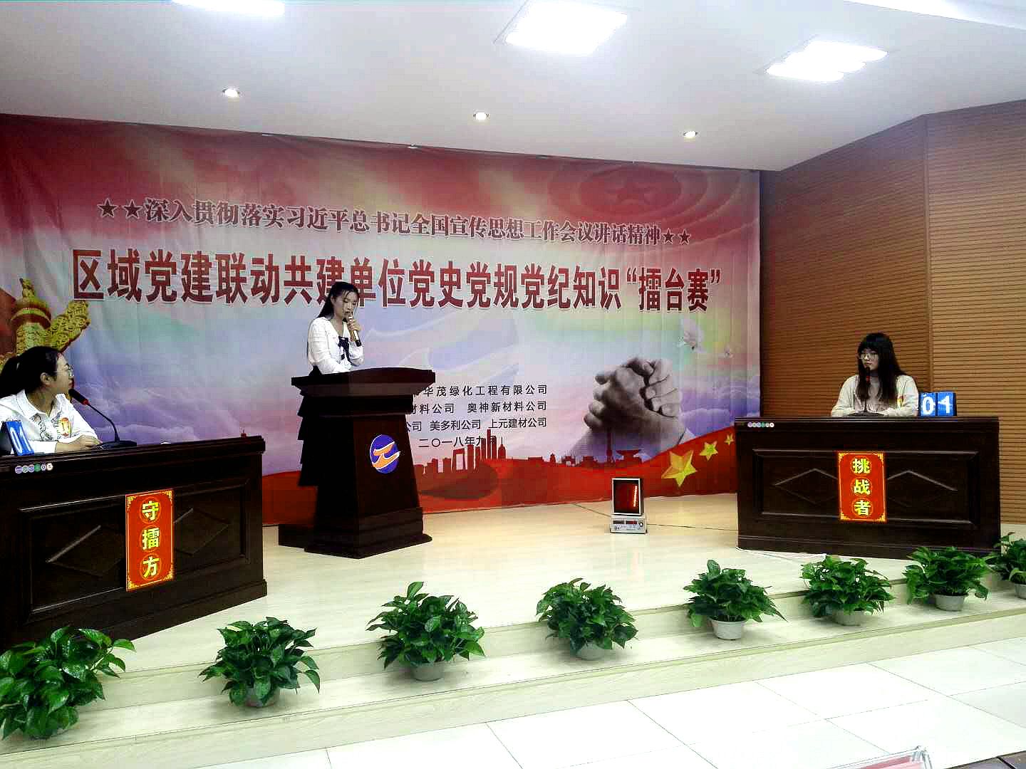 近日,華茂公司邀請神特公司、奧神新材料公司等5家區(qū)域黨建聯(lián)動共建單位,進行黨史黨規(guī)黨紀知識“擂臺賽”。我公司積極準備,派出員工何曉璐、李筠涵參加比賽。本次活動拉開了區(qū)域黨建聯(lián)動共建的序幕,促進了兄弟單位間的資源共享、融合互動,為下一步工作推進打下了良好基礎。
