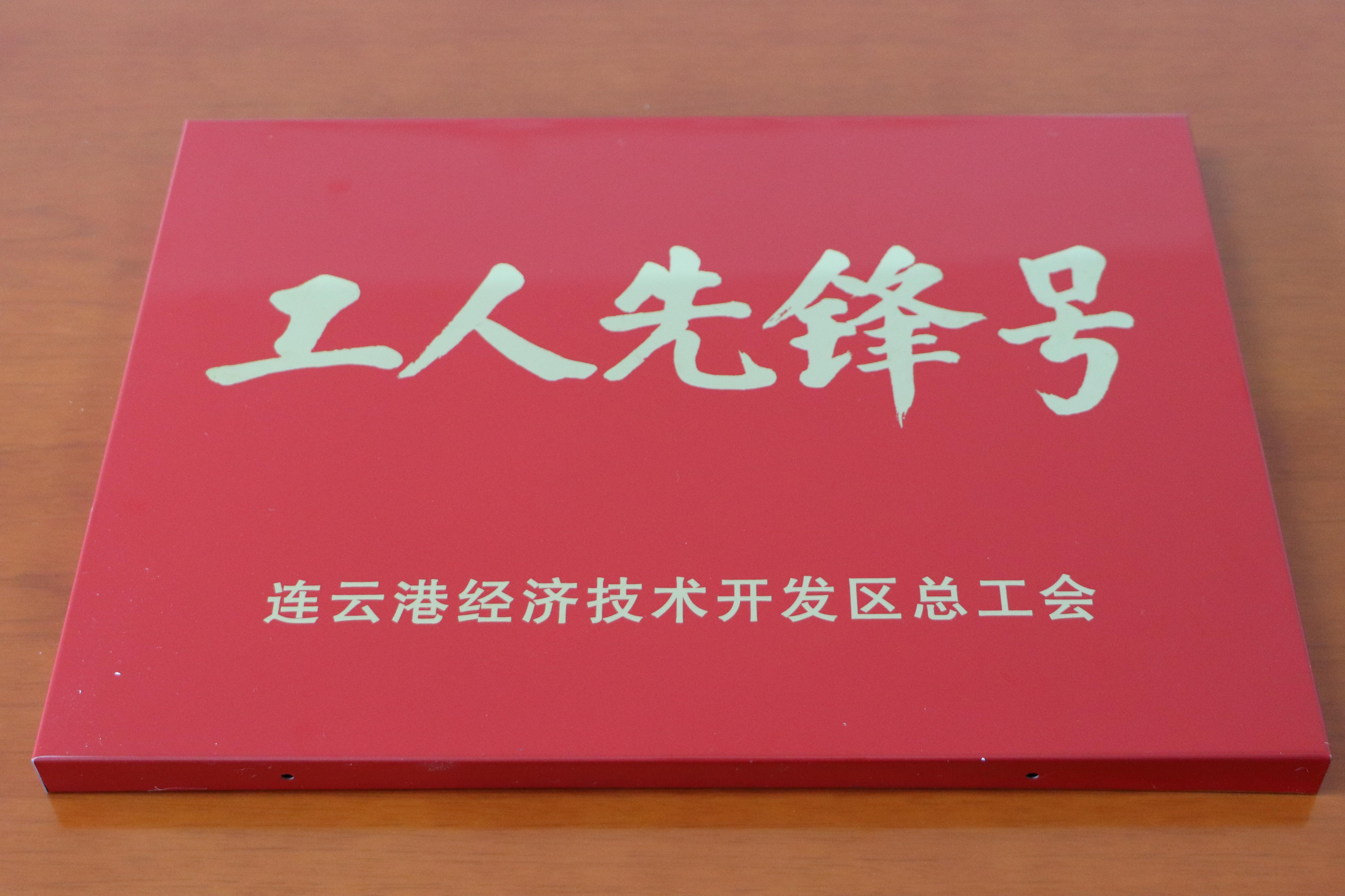 近日,公司捷報頻傳,自生產(chǎn)線一名員工被授予市勞模稱號后,5月11日上午,公司又從猴嘴街道辦事處工會領(lǐng)回獎牌,公司生產(chǎn)丙班被授予“連云港經(jīng)濟技術(shù)開發(fā)區(qū)工人先鋒號”。