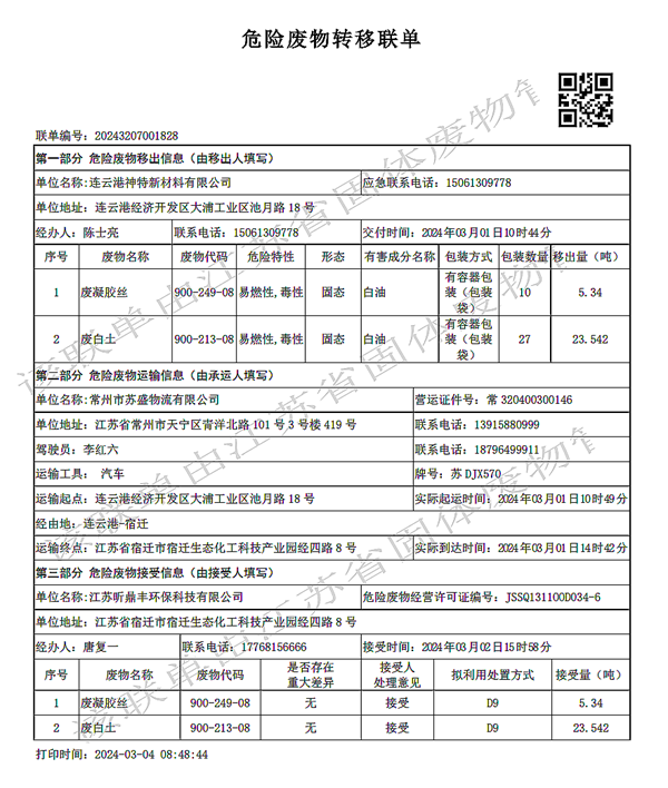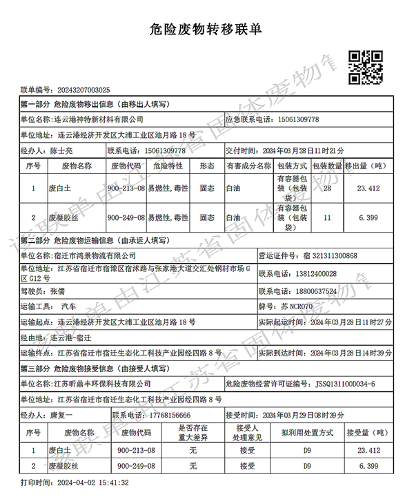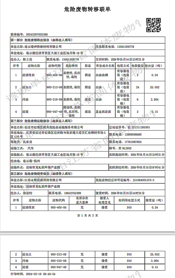 2024年第一季度危廢處置情況公示