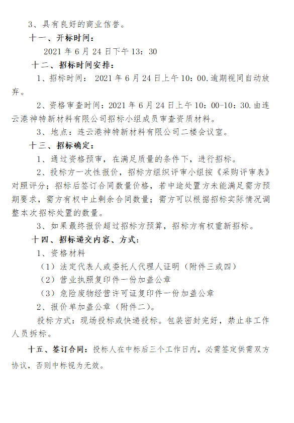 關于《2021年處置危廢(廢白土)100噸招標工作》的通知