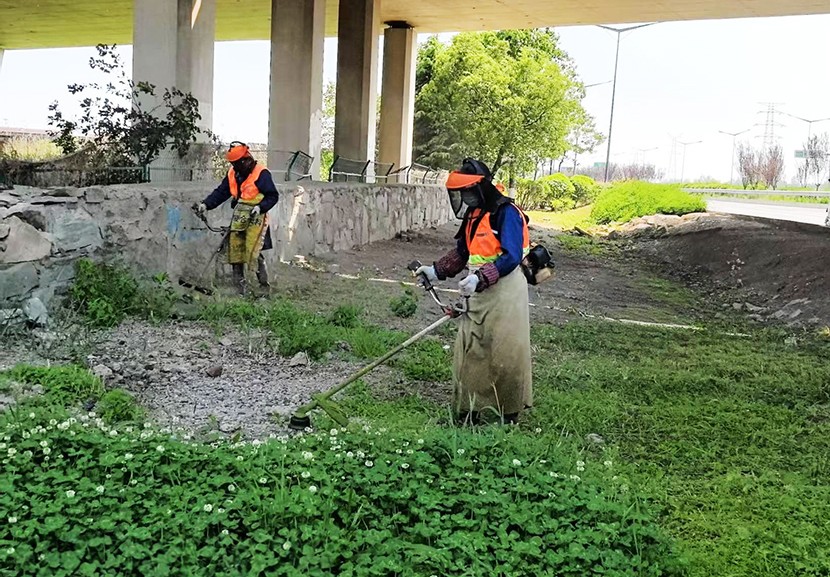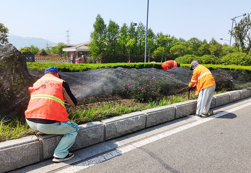 五一期間現(xiàn)場一片繁忙景象。養(yǎng)護工人們采取錯峰作業(yè),避開交通高峰,手持高壓水槍 ,對轄區(qū)東方大道、匯晶路、顧圩路兩側(cè)新栽植的苗木進行精準澆灌,確保新栽苗木存活率;東方大道養(yǎng)護班在孫班長的帶領(lǐng)下,對東方大道中央隔離帶內(nèi)進行補植麥冬,采取覆蓋遮陽網(wǎng)等措施,以減少水分蒸發(fā)和避免陽光灼傷。同時充分利用雨后土壤松軟,組織工人對轄區(qū)綠化帶內(nèi)的雜草、雜樹進行清除。