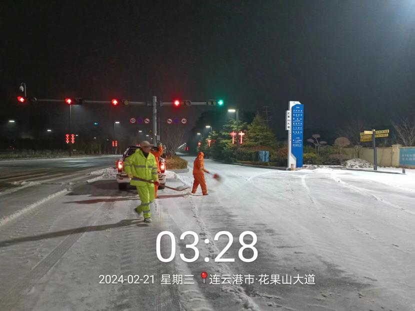 受寒潮影響,2月20日下午,港城普降“冰雪+冰粒”,投資公司第一時間啟動惡劣天氣應急處置預案,道路保潔、市政養(yǎng)護、后勤保障等戰(zhàn)線的干部職工以雪為令,在重點區(qū)域、重點路段、坡道、橋梁、涵洞等結冰路段進行撒鹽融雪融冰作業(yè),全力以赴除冰雪、防事故、護平安,為市民群眾出行一路“護航”。