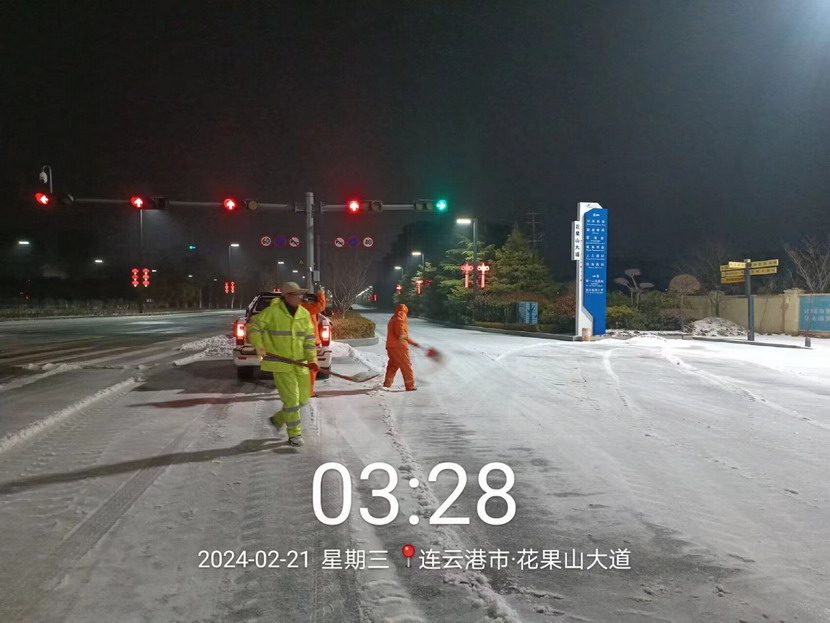 ? ? 2月20日晚,港城迎來了新一輪大范圍降雪,大部分地區(qū)出現(xiàn)凍雨伴冰粒天氣。為保障群眾出行安全,益豐園林分公司以雪為令,副經(jīng)理孫杰帶領(lǐng)徐明磊、樊如軍、朱文健3名黨員同志迅速反應(yīng),快速出擊,身披“橘”甲,浴“雪”奮戰(zhàn)。傍晚6點(diǎn)開始,從新光路涵洞區(qū)域到花果山大道東側(cè),先鋒大橋至黃海大道區(qū)域,再到東方續(xù)道至大港東路路段,4名同志不分晝夜,連續(xù)奮戰(zhàn),不間斷巡查,發(fā)現(xiàn)積雪立即鏟除,及時(shí)消除道路安全隱患,共計(jì)撒布融雪劑8余噸,積雪清理成效明顯,為周邊群眾出行開辟出一條“溫暖平安路”。