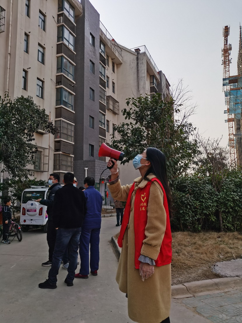 ▲昌圩社區(qū)臨時黨支部副書記蘇玲宣傳核酸檢測政策