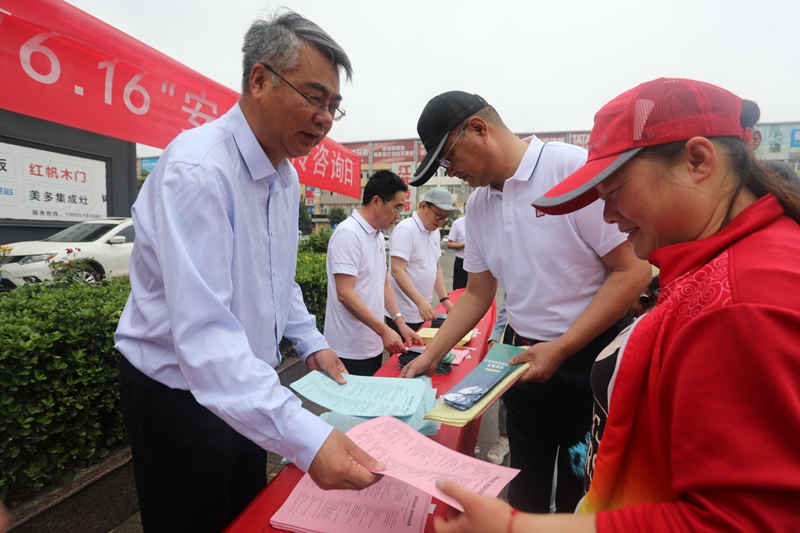 今年6月是第20個(gè)全國安全宣傳月。6月16日,投資公司領(lǐng)導(dǎo)班子全員參加,圍繞“落實(shí)安全責(zé)任,推動安全發(fā)展”主題,組織20余名安全管理人員在光伸建材廣場開展“6.16安全生產(chǎn)宣傳咨詢?nèi)铡被顒印?/span>