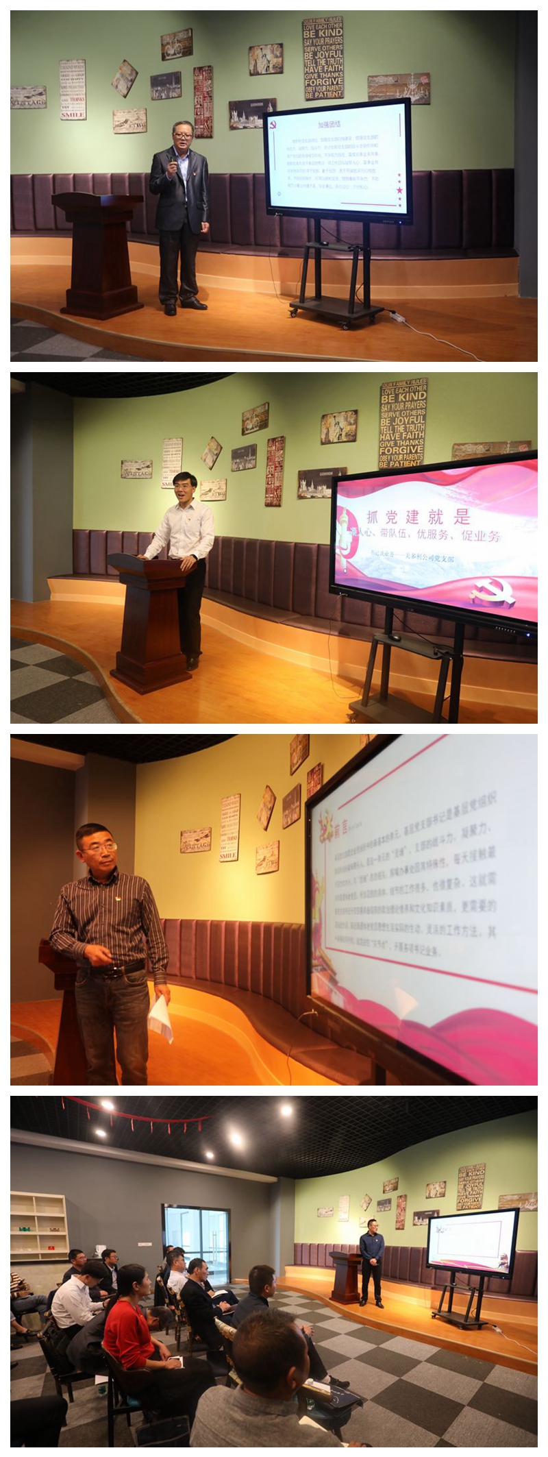 來自各支部的八位書記在論壇中暢所欲言,給與會(huì)同志帶來了一場精彩的頭腦風(fēng)暴:機(jī)關(guān)支部田克生書記圍繞政治學(xué)習(xí)、履行職責(zé)、遵章守紀(jì) 、廉政建設(shè) 、加強(qiáng)團(tuán)結(jié) 、黨建基礎(chǔ) 等六個(gè)方面的單間業(yè)務(wù),結(jié)合機(jī)關(guān)支部的實(shí)際情況和公司的中心工作分享了自己數(shù)十年的黨務(wù)工作經(jīng)驗(yàn);美多利黨支部張奉鳴副書記從青年黨員的教育、管理等方面暢談了任職一年來的想法思路;海州灣公司許邱白副書記以“把握發(fā)展重點(diǎn) 抓好黨建工作為題”,以“干貨滿滿”的實(shí)例介紹了本支部的工作特色······