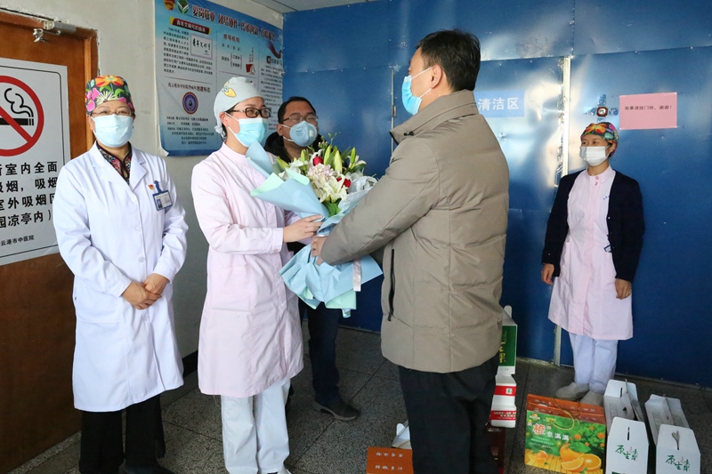 為慰問(wèn)公司職工家庭中的“戰(zhàn)疫天使”,并表達(dá)對(duì)戰(zhàn)“疫”一線醫(yī)護(hù)工作者們的敬意,2月27日上午,黨委副書(shū)記、工會(huì)主席吳衛(wèi)平代表投資公司赴市中醫(yī)院慰問(wèn)一線醫(yī)護(hù)工作者。市中醫(yī)院黨委書(shū)記李建軍、院長(zhǎng)李秀連、黨委副書(shū)記楊爽等親自接待了公司慰問(wèn)人員一行。