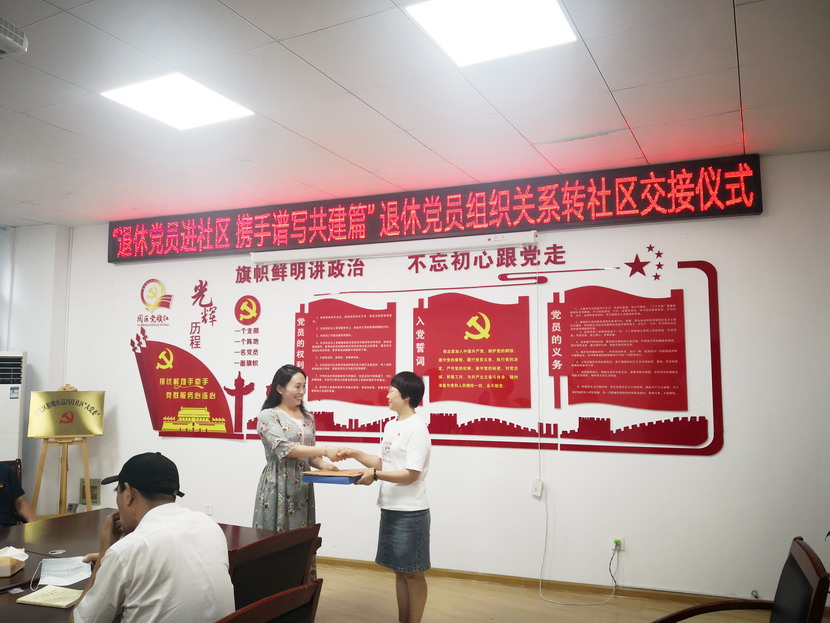 黨員組織關(guān)系規(guī)范轉(zhuǎn)接是事關(guān)黨員黨性和組織觀念的重要工作,是加強(qiáng)基層黨組織建設(shè)的基礎(chǔ)性工作。此次為退休黨員社會化管理工作啟動以來移交到社區(qū)的退休黨員舉辦組織關(guān)系轉(zhuǎn)接儀式,標(biāo)志著此項(xiàng)工作已經(jīng)步入了正常化軌道,也為后續(xù)新增退休黨員“即退即辦”常態(tài)化移交工作打好了基礎(chǔ)。