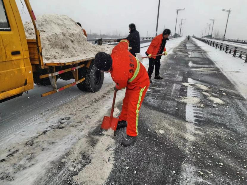 在這場除雪除冰的突擊戰(zhàn)中,翔立分公司主要清掃花果山大道和馬山立交橋的掃雪除冰工作。他們布灑融雪劑,確保道路暢通無阻;組織專車清運主干道積雪,使交通恢復正常。這些措施有效地緩解了雨雪天氣帶來的交通壓力,保障了市民的正常出行。